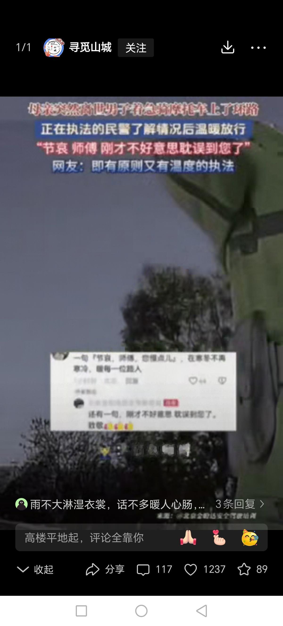 谁能想到,一场常规的路面检查,竟藏着最戳人的温柔!11月14日北京街头,男子得知母亲离世,骑摩托疯狂往通州赶,被交警拦下的瞬间,崩溃大哭说出那句“我妈妈没了”。没有生硬说教,没有刻板处罚,交警一句道歉、火速报备放行,再加上那句“您慢点,注意安全”,瞬间破防! 这哪是执法,分明是人心与人心的温暖对接!执法不是冷冰冰的条款,而是带着温度的守护,比起规则的刚性,此刻“回家见母亲最后一面”才是最该被优先守护的底线。交警的果断放行,不仅没违背原则,反而让法律的善意被看见、被铭记。 原来最好的执法,是刚柔并济的共情,是把群众的急难放在心上。这样的交警,谁能不狠狠点赞?如果你遇到这样的暖心执法,会忍不住记录下来吗?