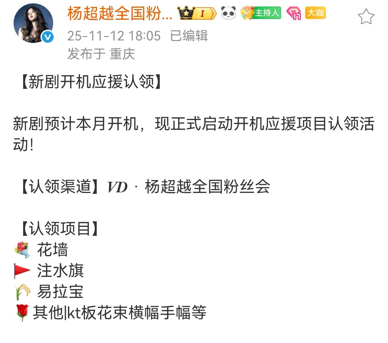啊啊啊杨超越新剧即将开机啦!大家一起给杨超越最好的应援! 杨超越应援新剧开机女明星广州