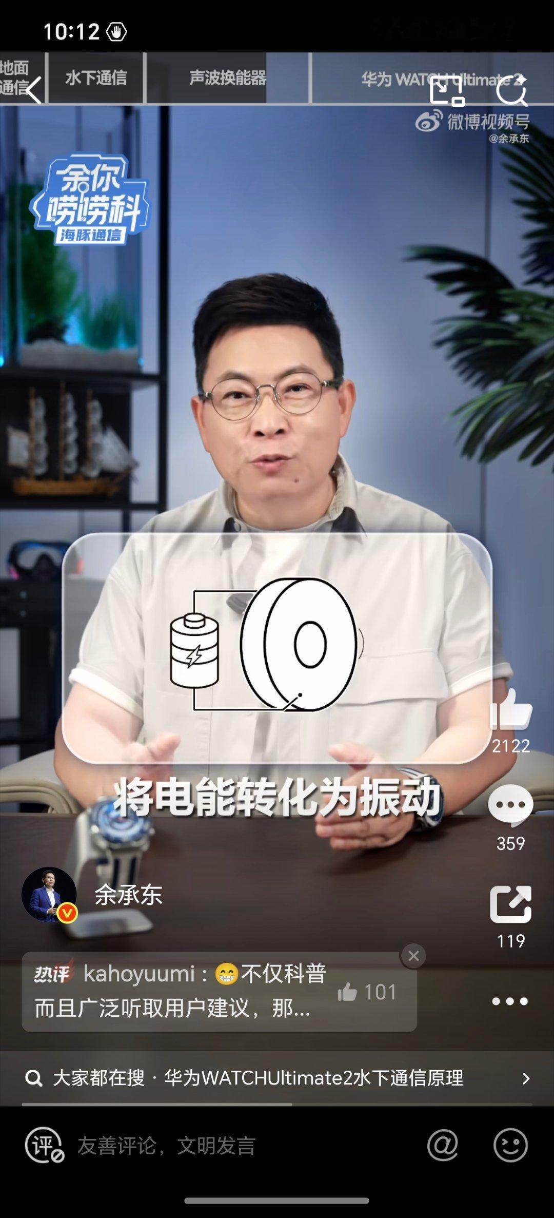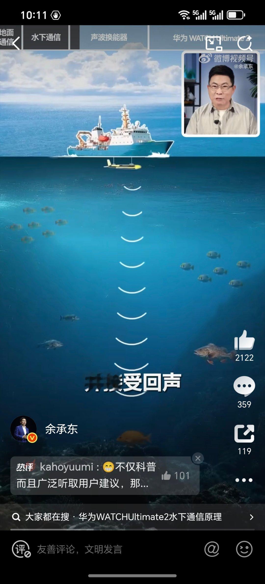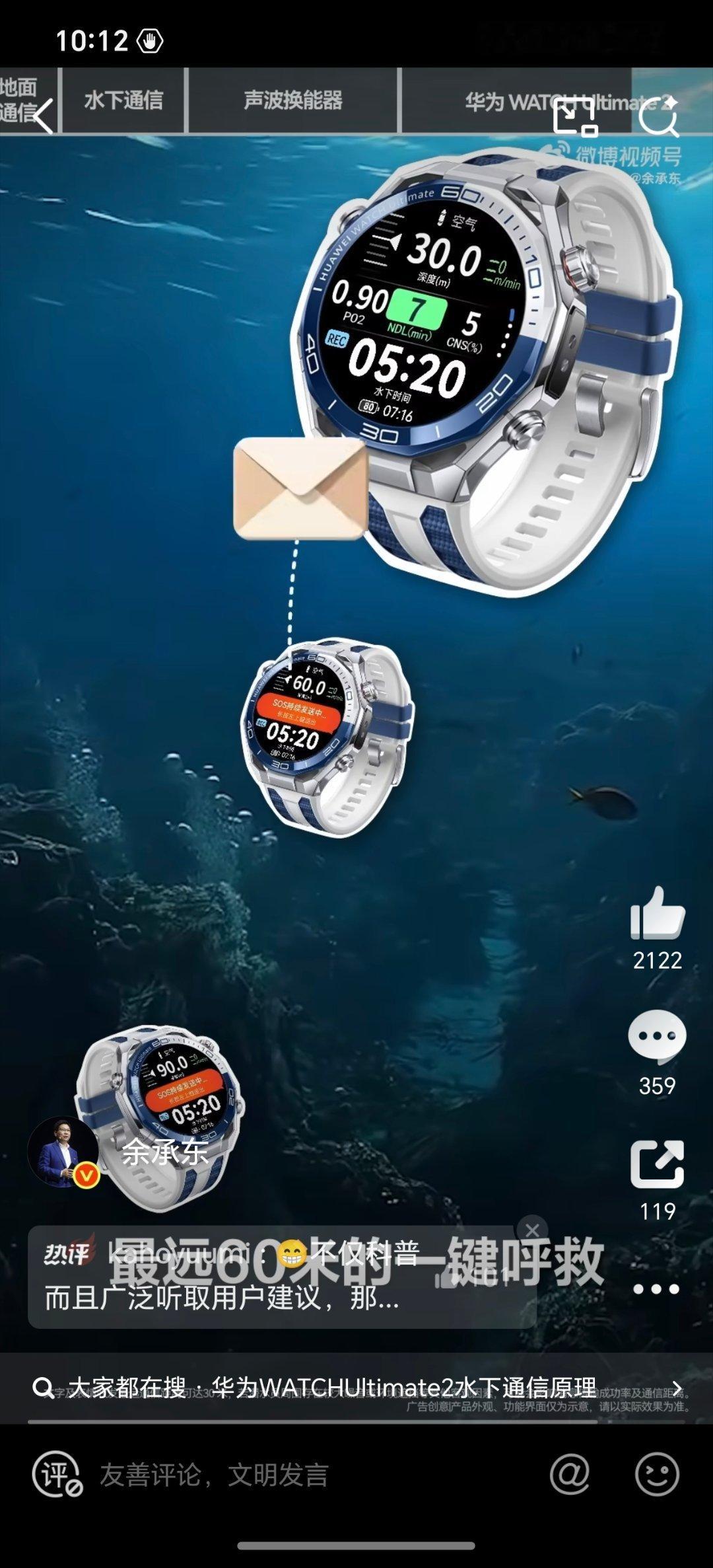余承东科普华为 WATCH Ultimate 2海豚通信功能。