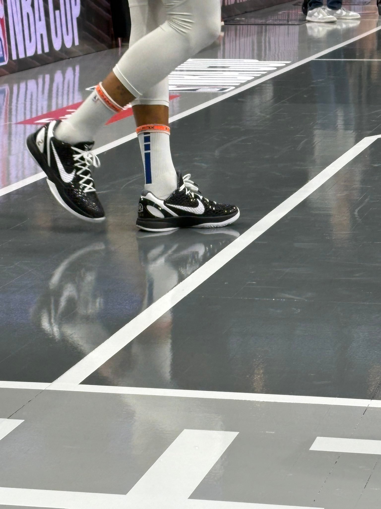 离开安德玛的第一天,今天赛前热身库里穿了耐克科比6“Mambacita sweet 16”
