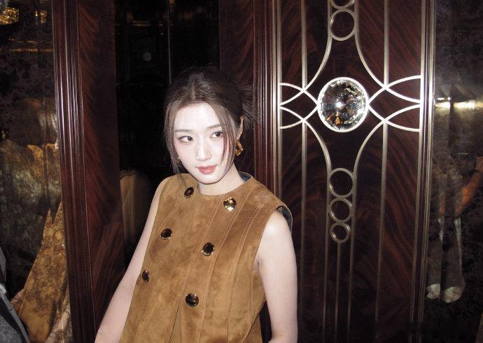 刘亦菲这条裤子挺养生,毕竟降温了肚脐眼必须护住啊