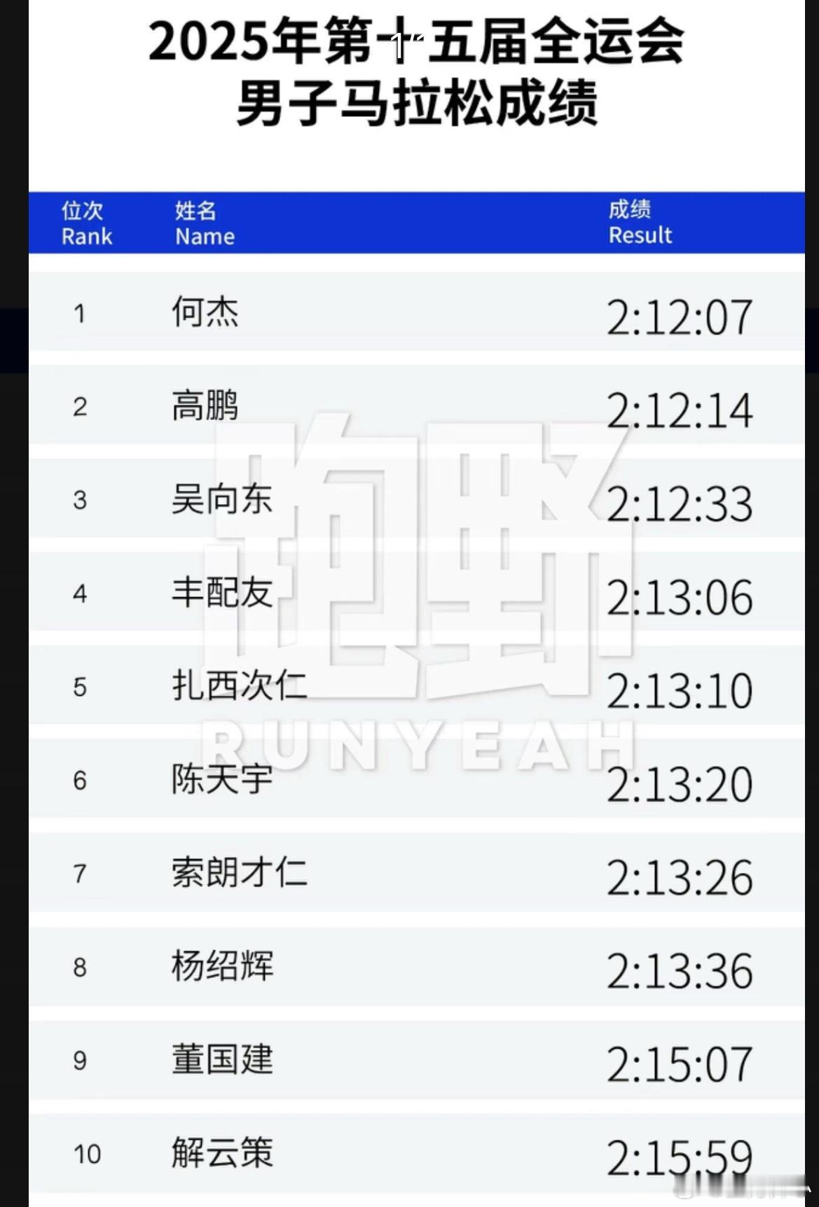 2025全运会马拉松项目男子组前三名:宁夏何杰 2:12:07冠军云南周鹏 2:12:14亚军安徽吴向东(会长)2:12:33季军 女子组前三名:云南张德顺成功卫冕2:30:20 (个人)次仁措姆 2:30:25 银牌河南路颖 2:30:44 铜牌(来自跑野大爆炸图片)