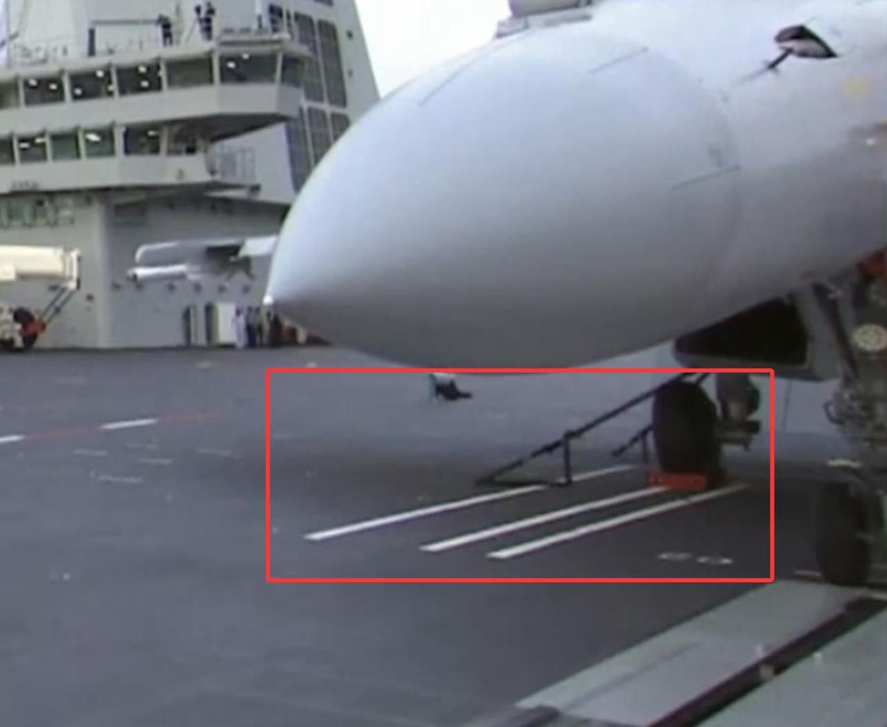 076型四川舰电磁弹射器旁的轮挡印记清晰可见 这预示着四川舰目前至少能上三种固定翼无人机 图源网络