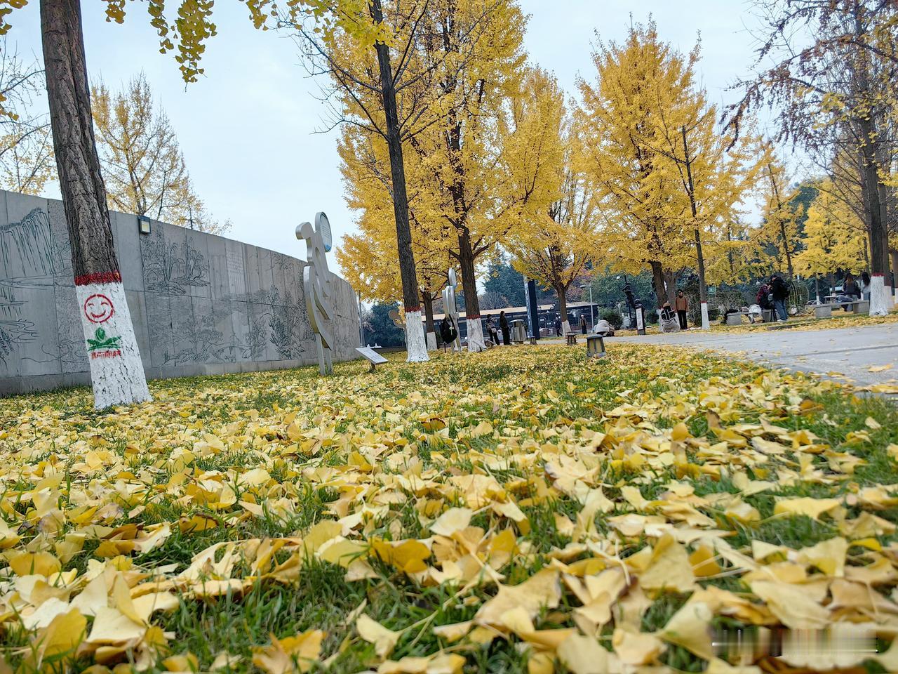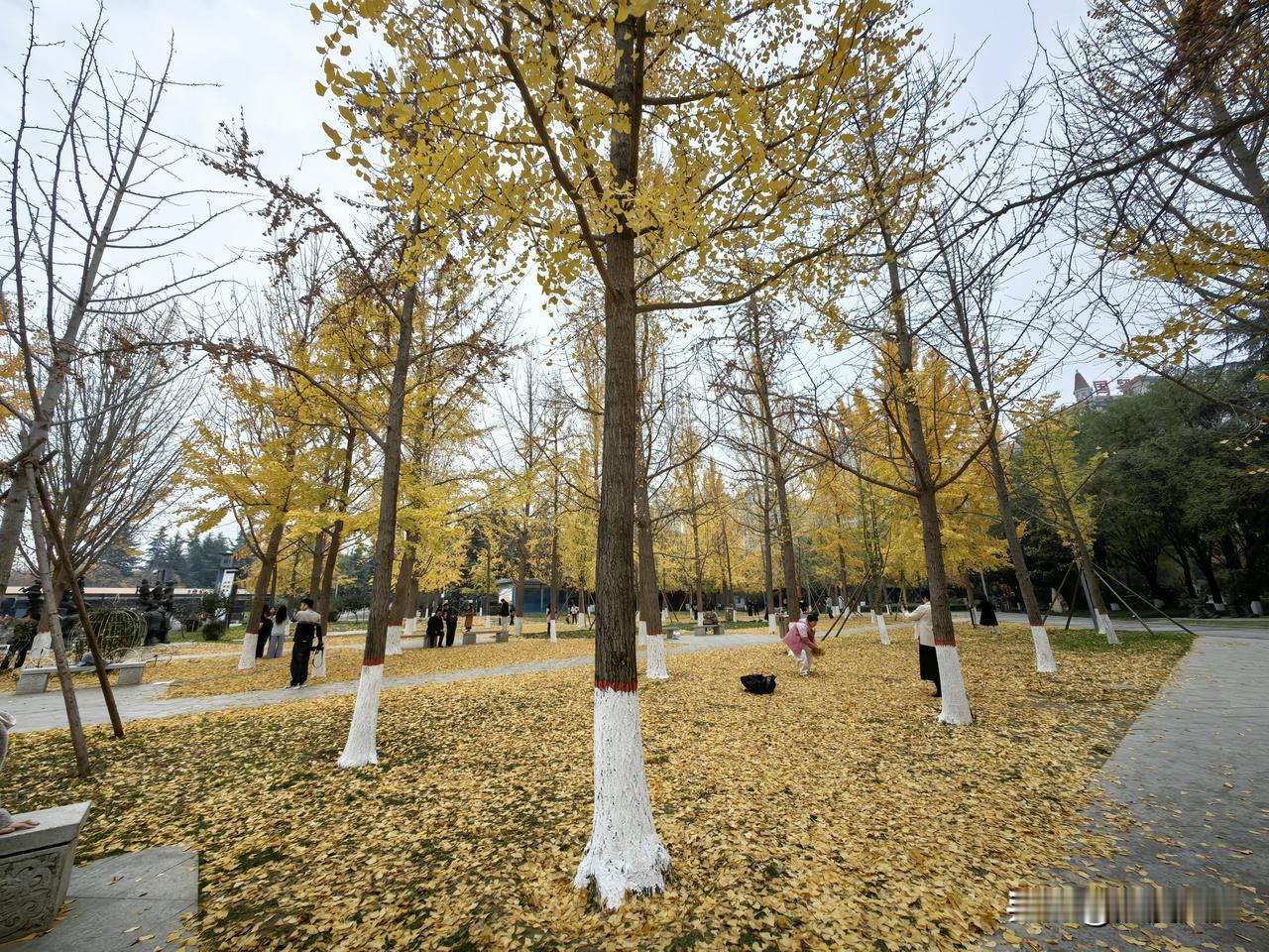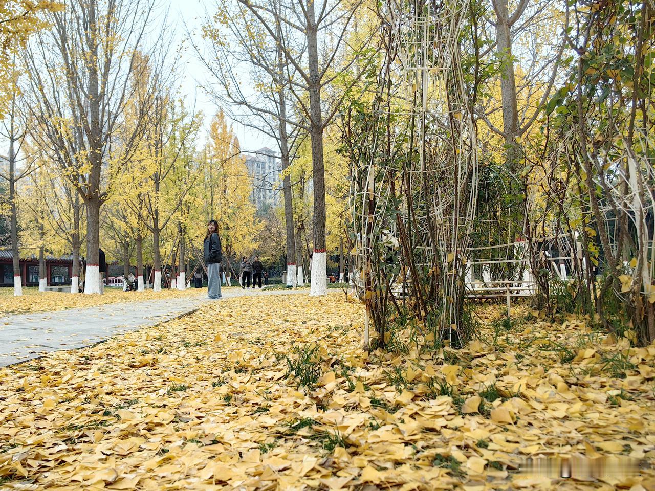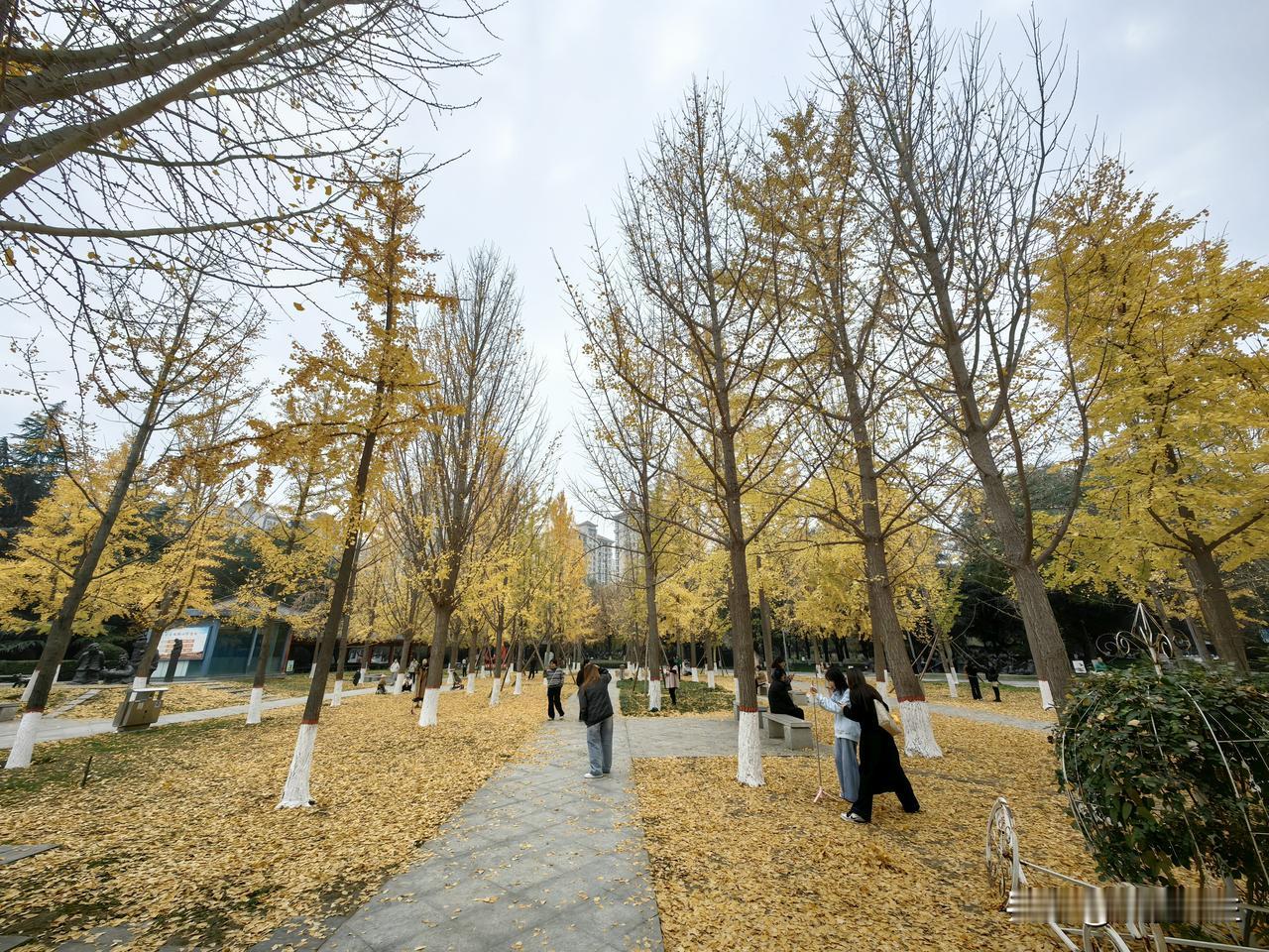渭南大片银杏树树叶子黄灿灿,打卡拍照人群络绎不绝,大片银杏树叶黄灿灿,黄灿灿的落叶飘飘落落,地面已经很厚的黄色树叶,酷似黄金甲,漫步其中,梦似穿越童话世界,真是棒棒哒👍👍👍