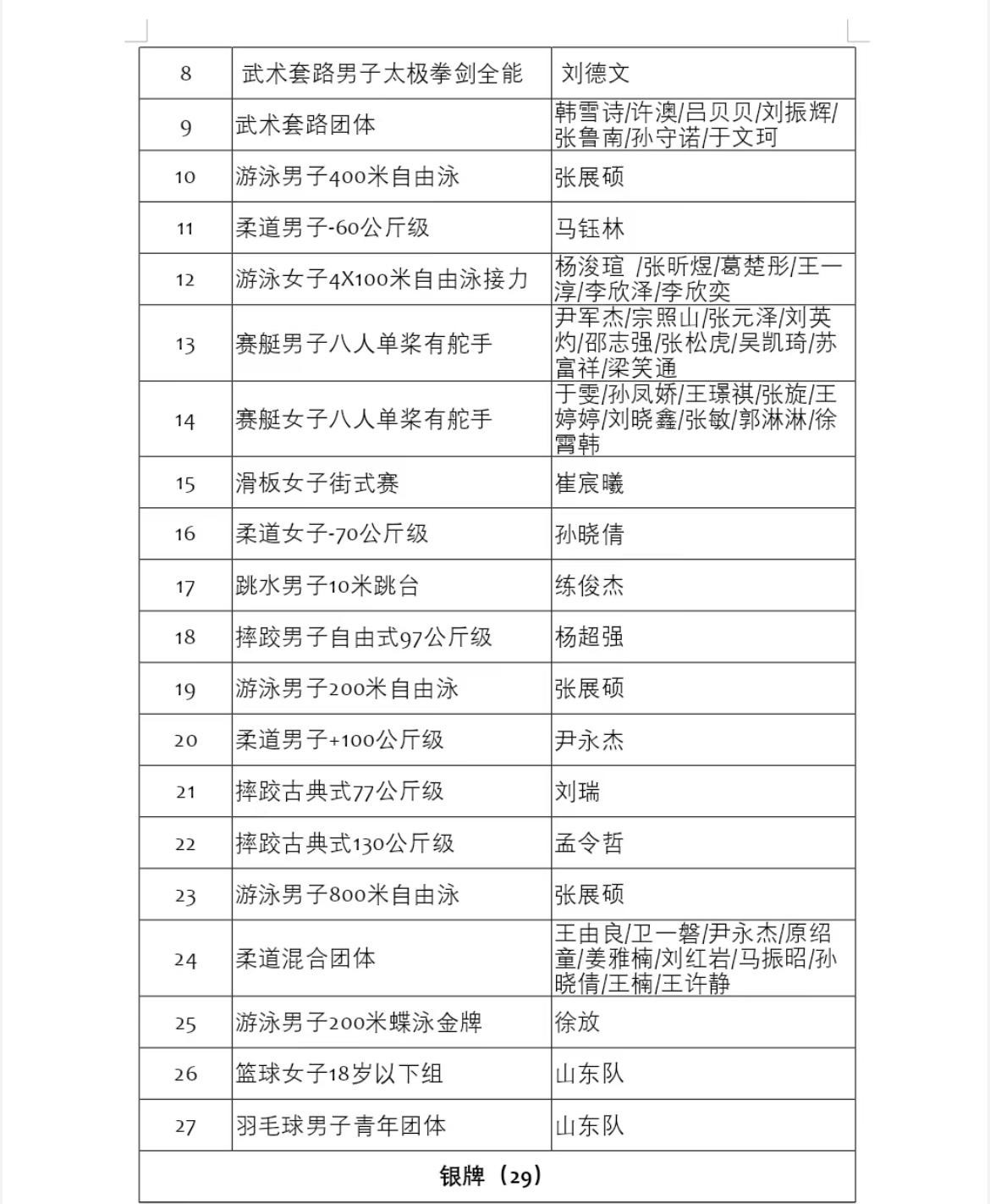 山东体育代表团截止11月15日完全金牌榜。从第一金到第二十九金,哪一块金牌都不容
