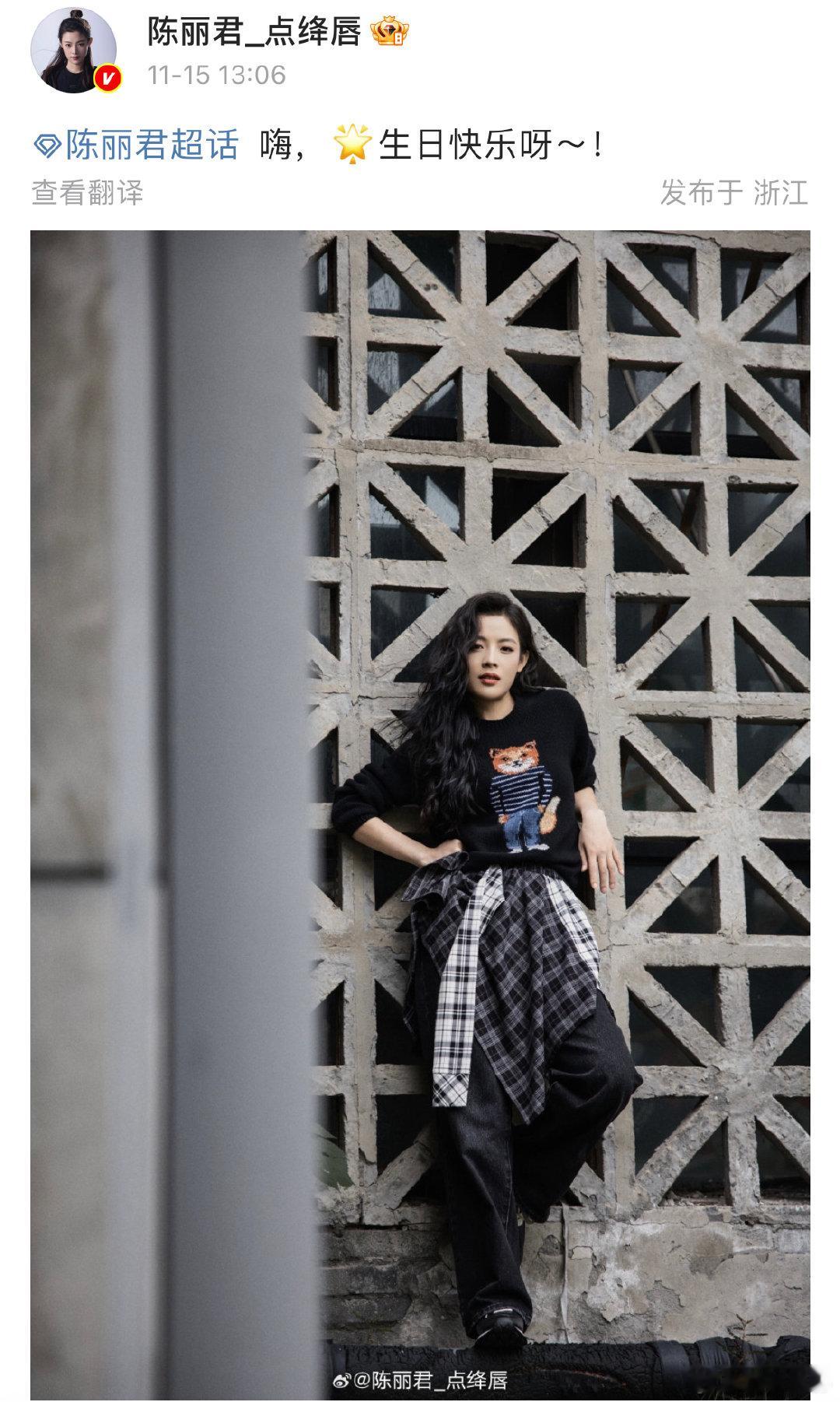 陈丽君晒照为超话庆生:“ 嗨,🌟生日快乐呀~! ”