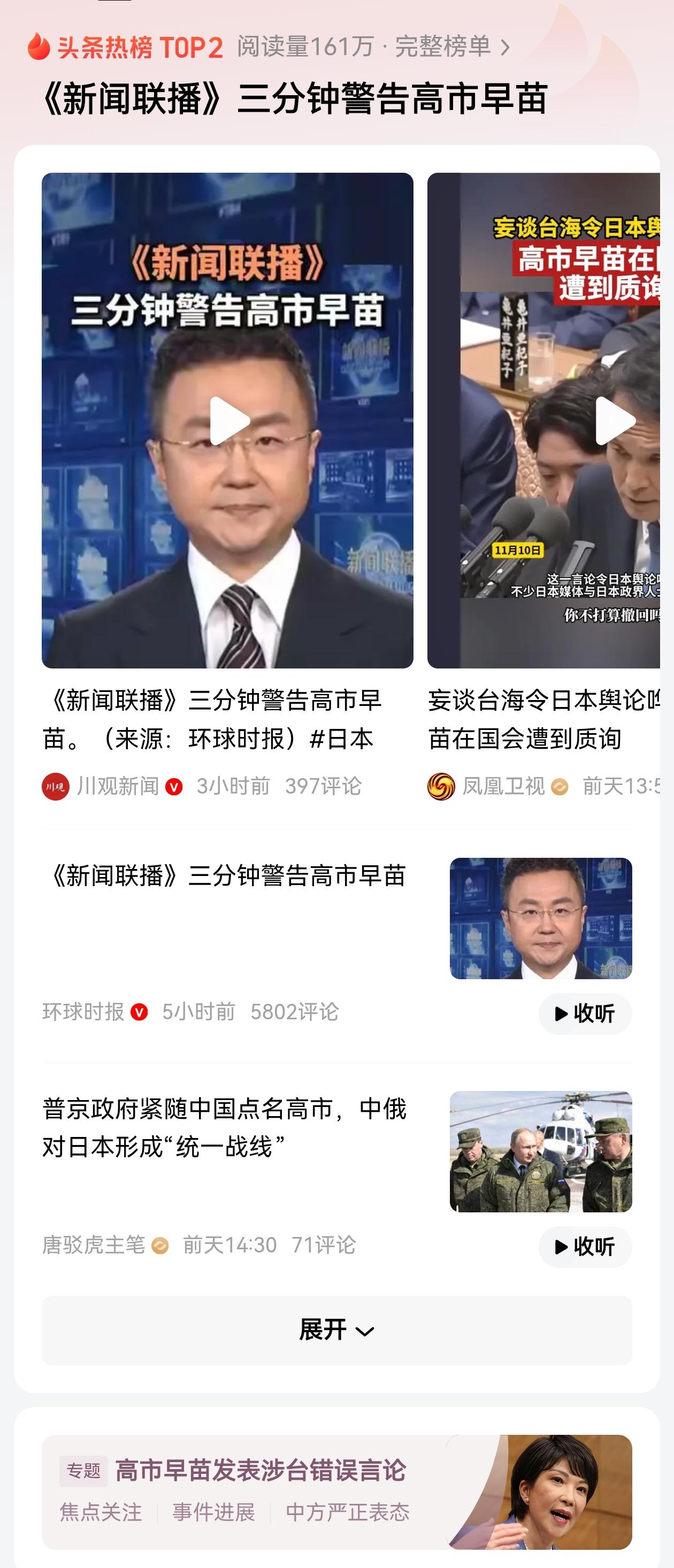 新闻联播也就30分钟,用3分钟警告这个搞事的早苗。她不只是搞事,她是作死。统一台湾已经在进行,日本想螳臂当车蚍蜉撼树,中国会把日本以及整个东亚的治理问题一并解决了。在历史的长河中日本也就嘚瑟了几十年,当美国势衰中国必须接过狗链,牢牢的锁死日本军国主义的火苗。日本妄想借中美博弈谋利是贼胆包天,中俄朝甚至包括韩美,二战战胜国会把日本五马分尸。