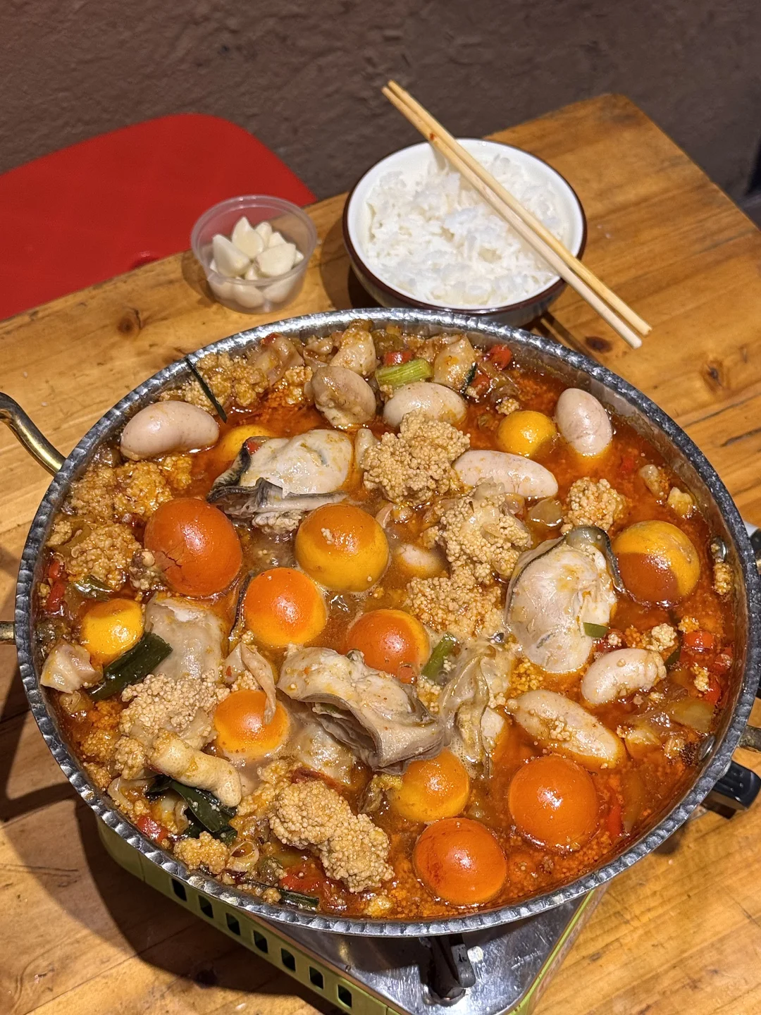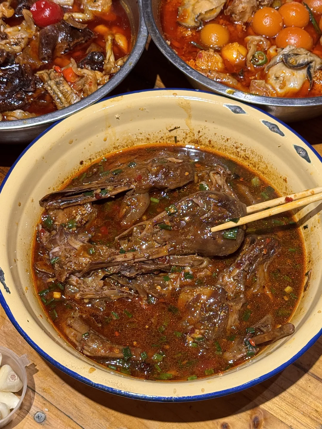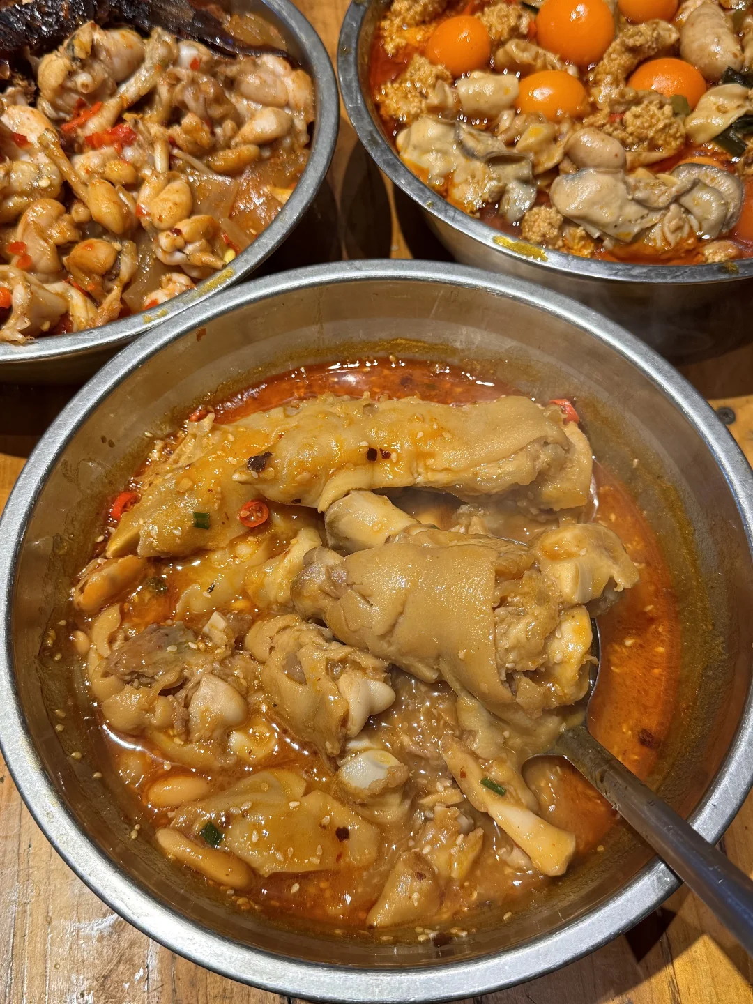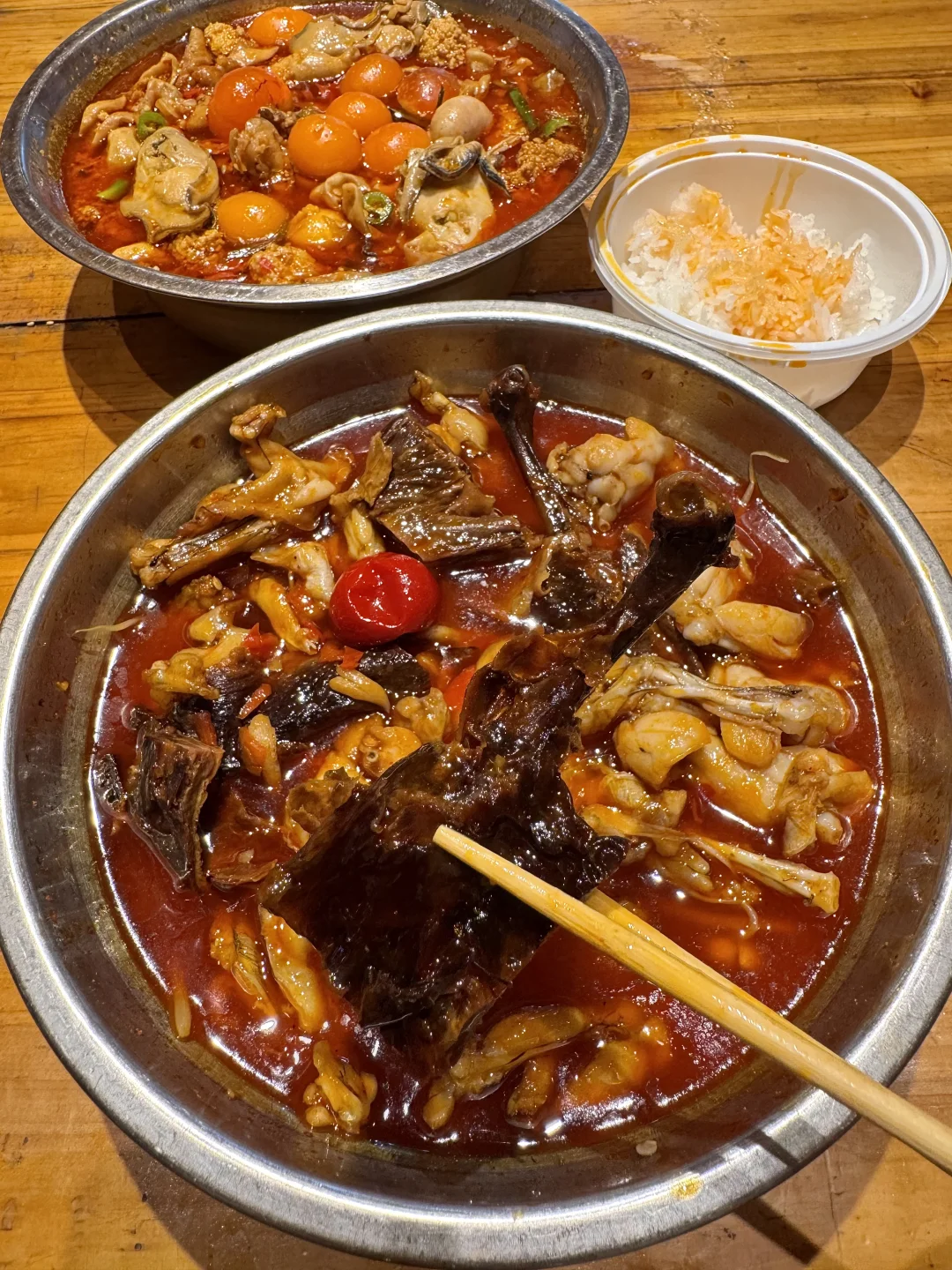 吃了七八回才舍得分享的😭鱼籽鱼泡火锅+大生蚝!!越煮越香越煮越辣!连汤拌饭干了3碗…一口下去真的惊为天人的好吃🥲 就在拱墅万达!叫:山城兄弟)酱板鸭牛蛙锅、鸭三件、老妈蹄花…带了好几个朋友来全都是好评好好吃!