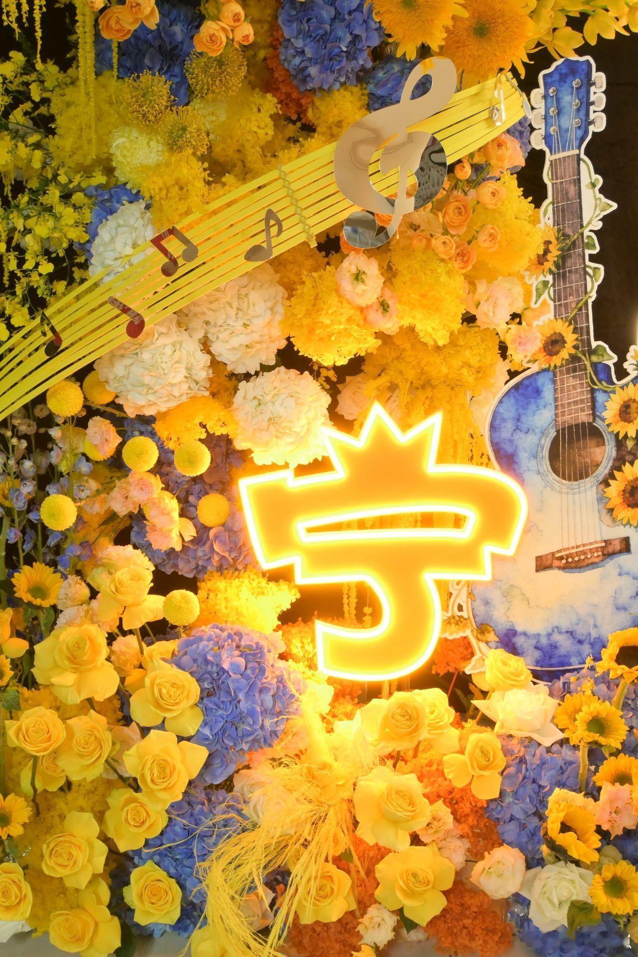 刘宇宁190+身高竟被花篮“赶超”!黄蓝配色搭吉他元素超吸睛,花团锦簇超惹眼,这高度太惊人,满屏爱意宁哥肯定接收到~
