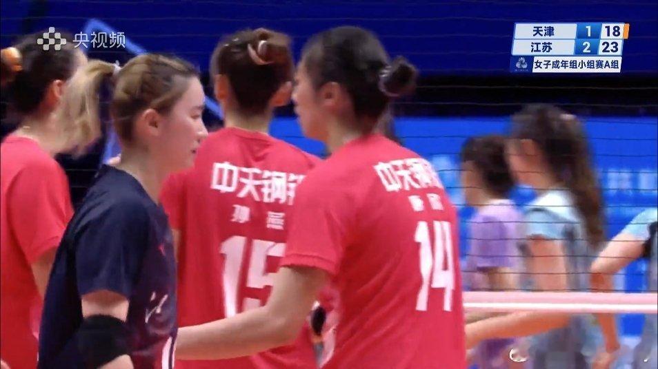 【全运女排】成年组A组,江苏女排3-1(19-25 25-23 25-20 25-18)击败卫冕冠军天津女排豪取6连胜,江苏女排小组第一晋级八强,将和B组第四名争夺四强席位。天津女排遭遇第二次失利将排名A组第三。