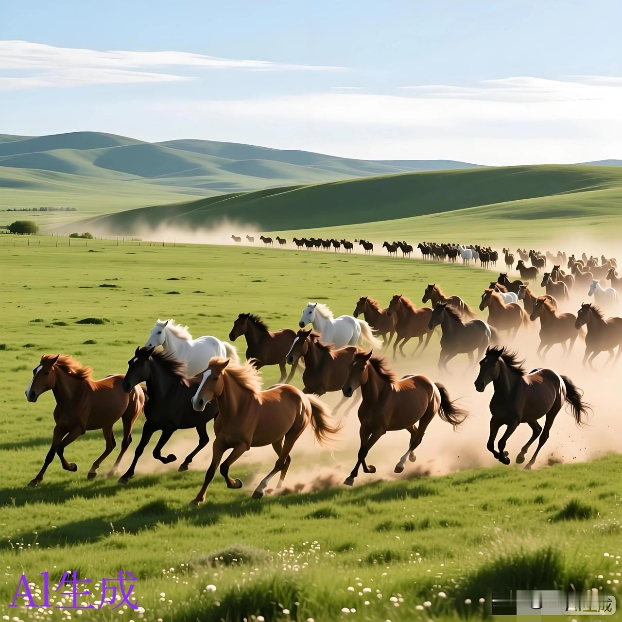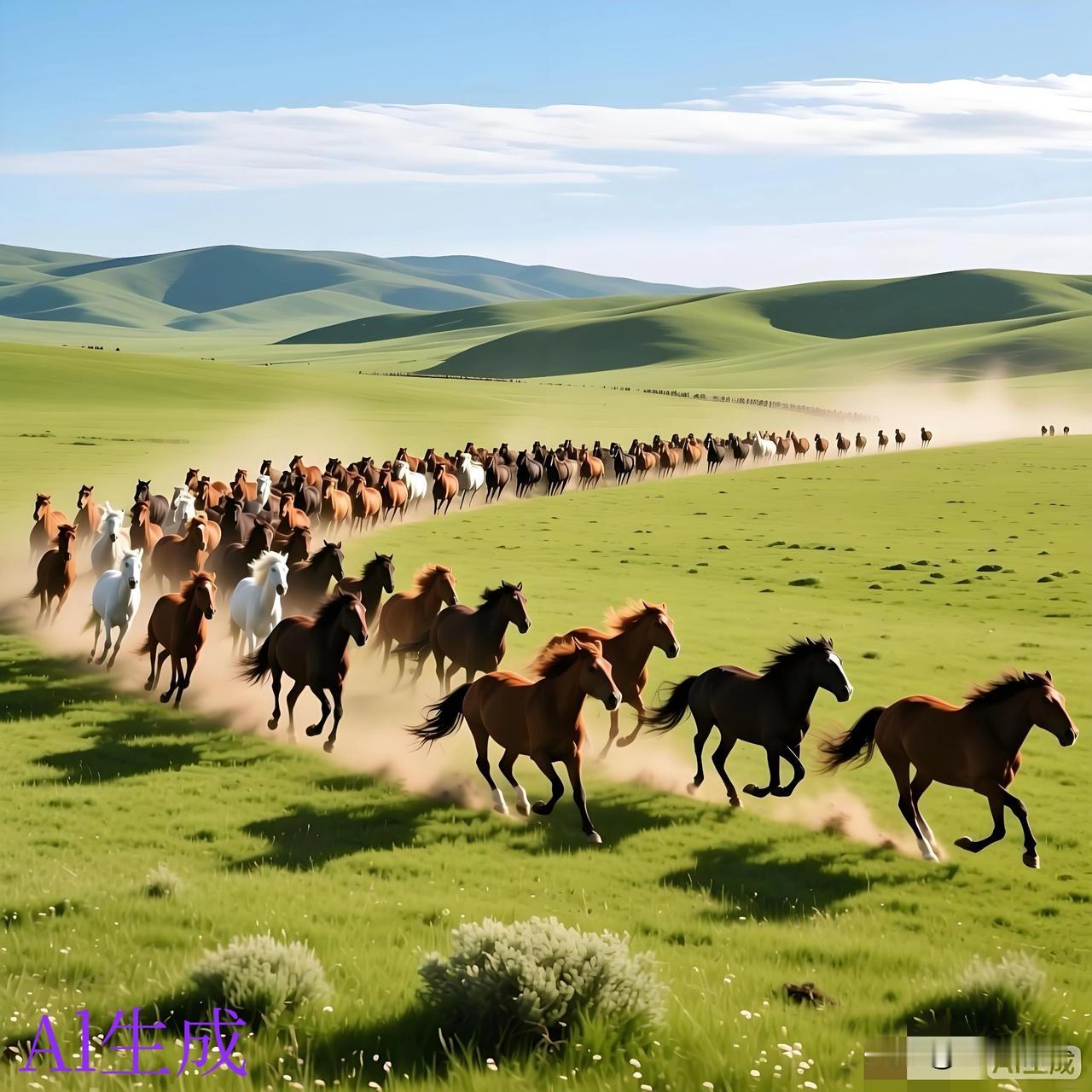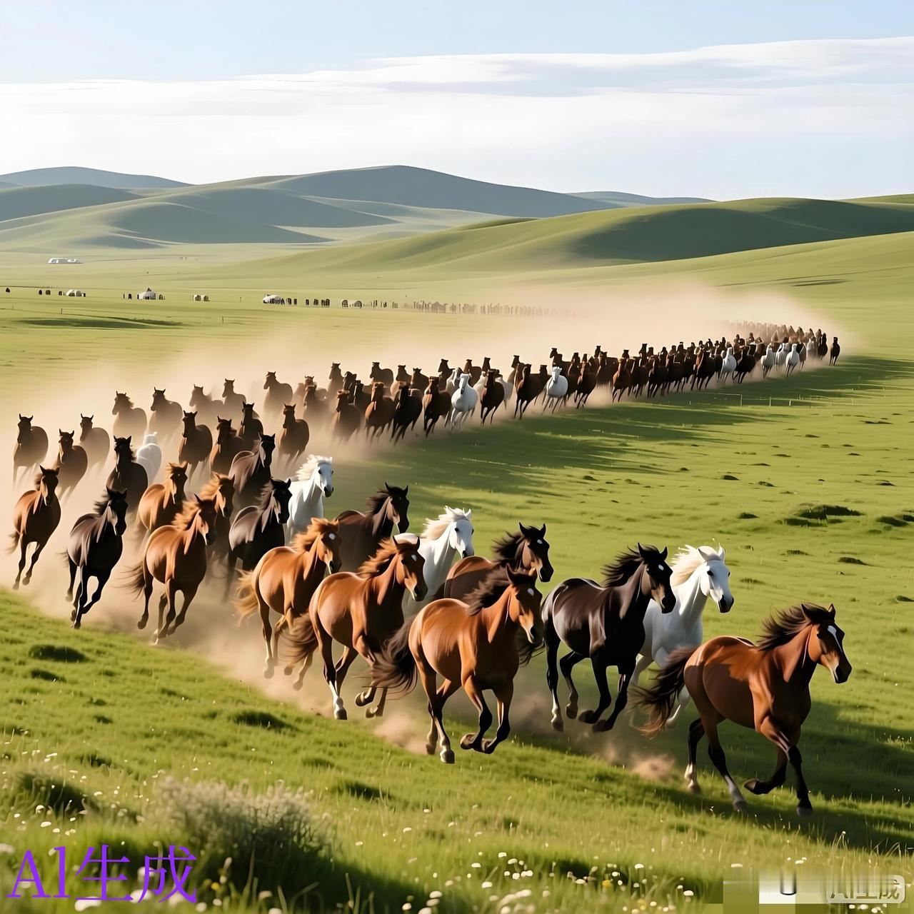 这万马奔腾的场景真是壮观 一条长长的马队井然有序向前奔跑。 如狂风扫过草原,奔腾而来。 鬃毛飞扬、马蹄声隆! 姿态豪迈、自由奔跑、无畏无惧。 如潮涌般壮观,让人心生敬畏又感怀生命。 这不慌不乱的队伍不得不让人夸赞一句:马儿真乖!