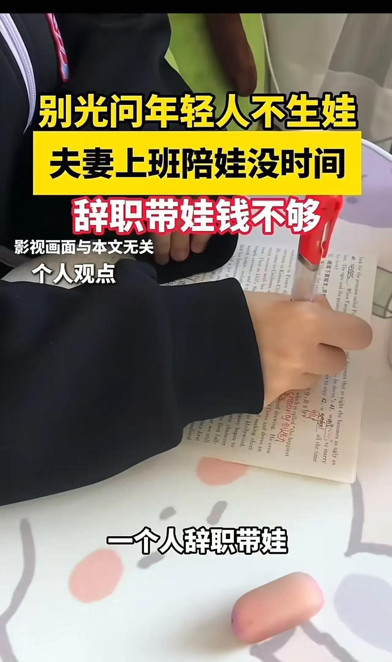 生育率低成社会热议话题,可年轻人不生娃的苦衷又有谁懂?一位女子就勇敢发声,直戳痛点,引发网友热议。 这位女子吐槽道,别光问年轻人为什么不生娃,现实情况是夫妻俩上班就陪不了娃,想辞职带娃吧,钱又不够花。现在的年轻人,面临着巨大的生活压力,既要努力工作,又要照顾家庭,实在是分身乏术。而且,现在养娃的成本也越来越高,从奶粉钱到教育费,每一项都是不小的开支。动不动就说结婚率低,生育率低,可为啥就没人说说人均收入有多低呢?如果收入能跟上生活成本的上涨,年轻人或许会更愿意考虑生育问题。这位女子的吐槽,说出了很多年轻人的心声,也让我们看到了年轻人面临的现实困境。她的观点,不仅得到了网友的广泛共鸣,更引发了大家对于生育问题的深入思考。 这位女子的吐槽,确实戳中了要害。生育问题不是简单的个人选择,而是社会问题的综合体现。大家怎么看呢?快来评论区留下你的观点,一起探讨这个话题吧!生育现状 生育率下降 低生育率 国人生育观