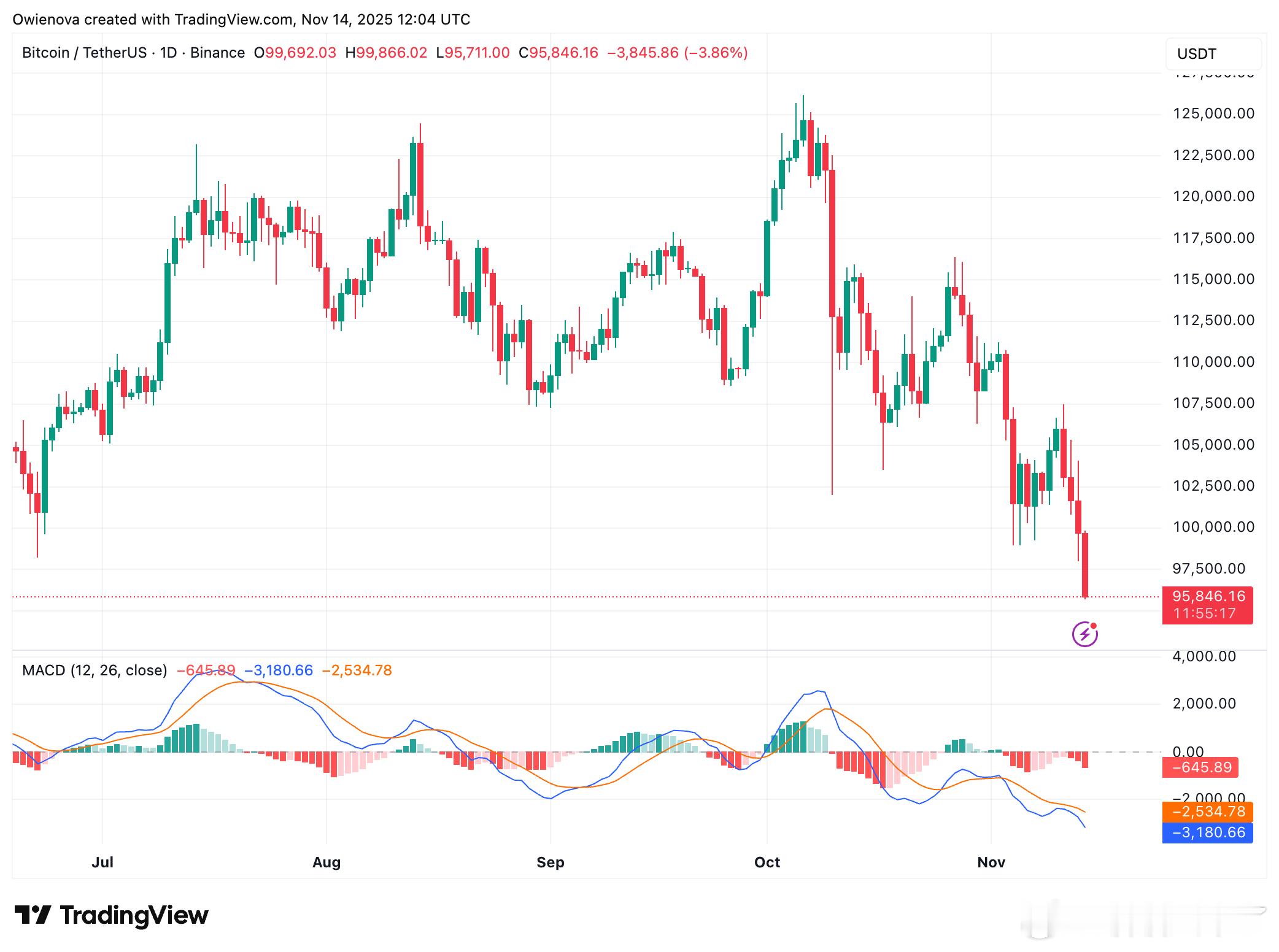 比特币的下跌并非偶然,它正好在 9.9 万至 10 万美元的微阻力区被压制,价格随即走弱并创出新低。当前市场的关键在 93,700 至 97,500 美元区间,这是多头必须守住的最后重要支撑。一旦失守,下方 91,300 美元将成为下一目标,而更深的延伸区甚至可能触及 8.2 万至 9.1 万美元区间。分析师强调,只有重新突破并站稳 100,500 美元,比特币才有真正触底反转的可能。