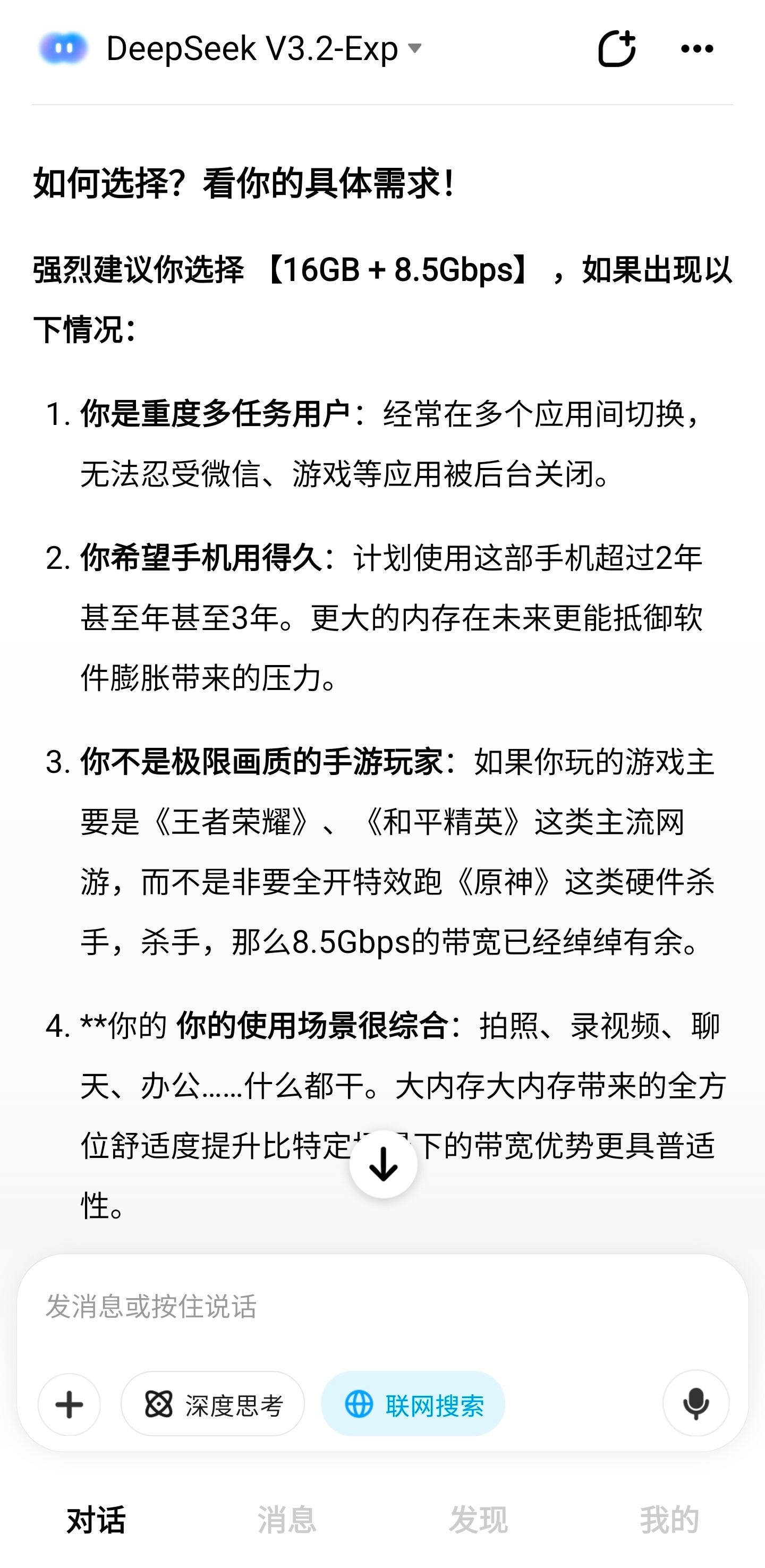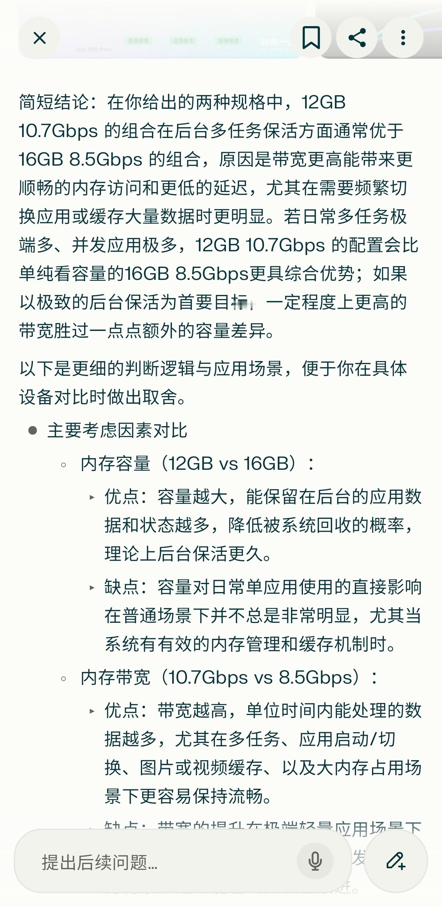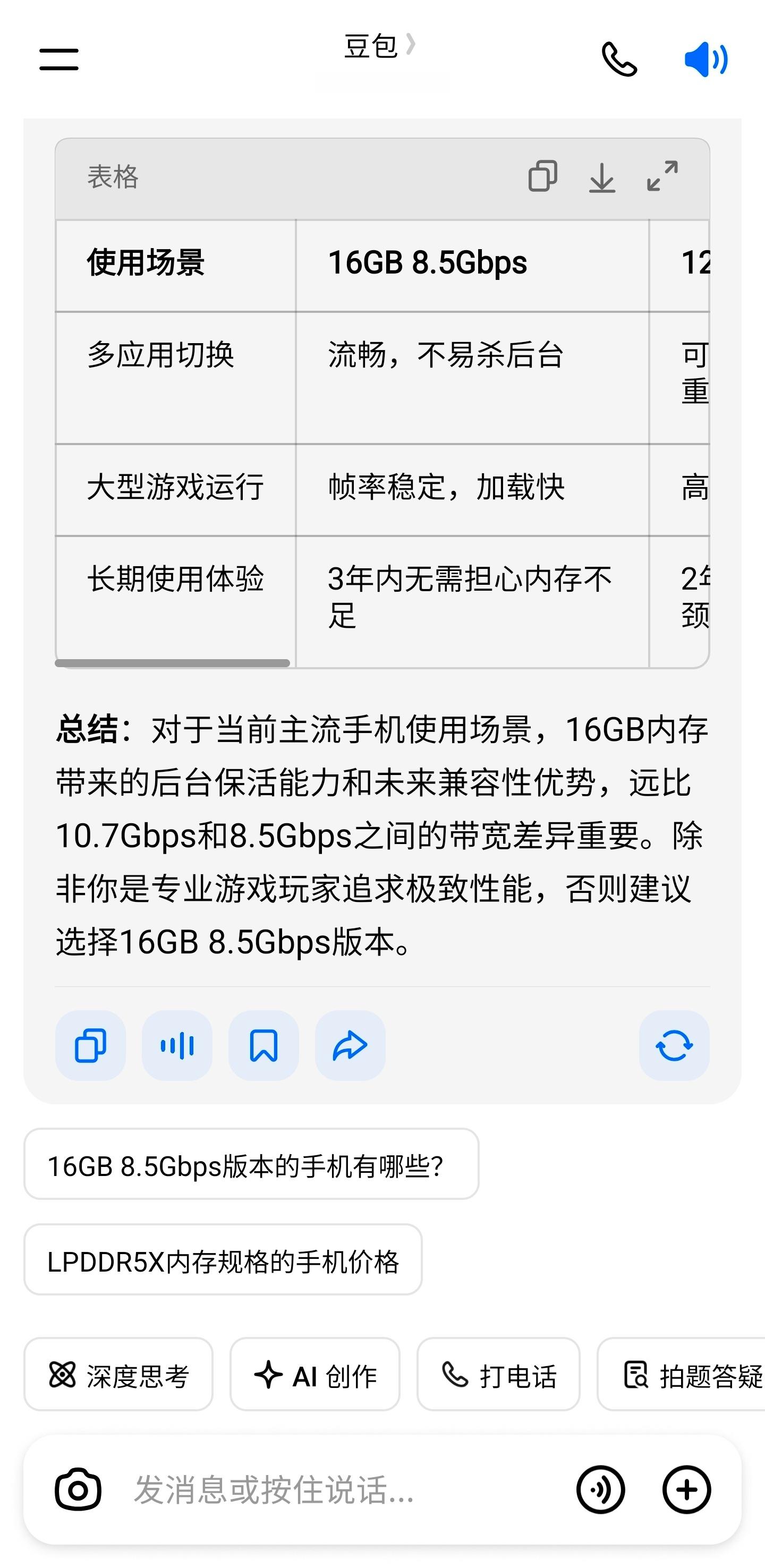 把这个问题抛给不同AI,他们怎么回答?“手机这俩LPDDR5X内存规格你怎么选?12GB 10.7Gbps 和 16GB 8.5Gbps”————————————————结果:豆包,deepseek,Gemini ,Grok 选16+8.5ChatGPT,元宝,perplexity,kimi选12+10.7