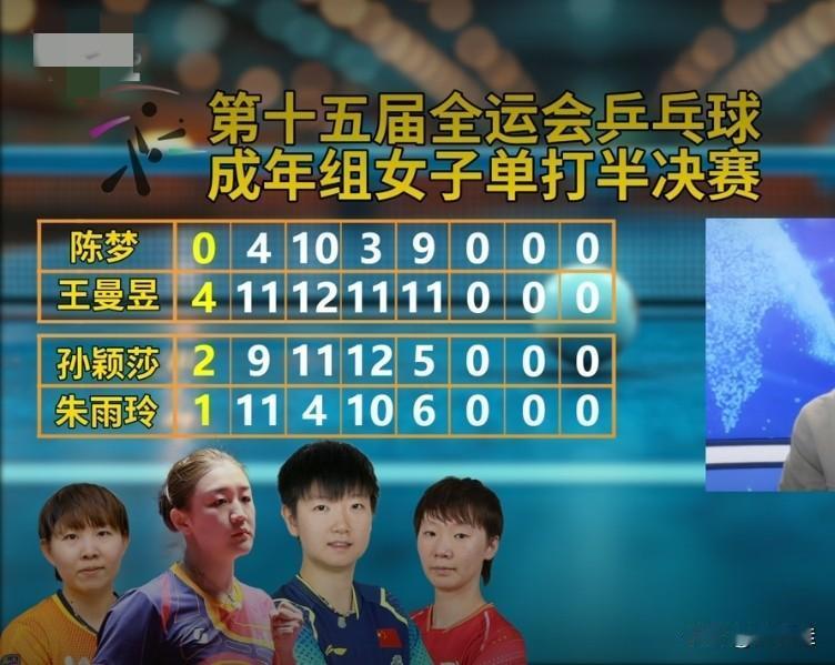 神仙打架!王曼昱4-0横扫陈梦,全运会半决赛太燃了! 刚结束的全运会女单半决赛谁看了不喊绝?王曼昱和陈梦这波巅峰对决,每一分都扣到心巴上! 31岁的陈梦休战9个月复出,1/4决赛刚上演0-2落后逆转的好戏,这次面对卫冕冠军丝毫没怯场。第二局双方战到9-9平,陈梦大角度调动正反手,可惜关键分没把握住被王曼昱12-10拿下。 26岁的王曼昱状态直接拉满,护台能力和相持质量绝了,第一局就打出5-0得分潮,第三局更是火力全开连得6分轻松拿下。第四局陈梦拼到9-9平,最终还是没能顶住王曼昱的强势进攻,以9-11告负。 虽然陈梦4-0落败,但这位奥运冠军的韧性让人佩服;王曼昱则延续了国内赛场优势,向着卫冕稳步前进。这场比赛没有输家,一个是久疏战阵仍显实力的老将,一个是状态正盛的卫冕冠军,这就是国乒的魅力!