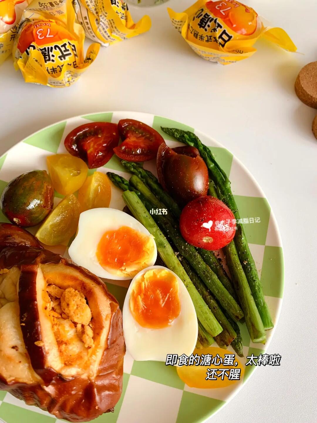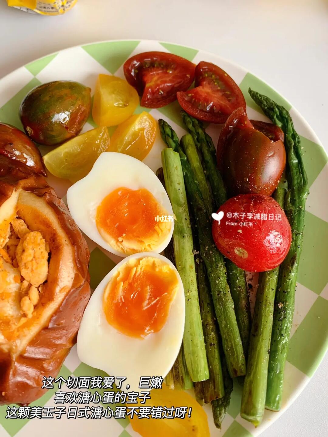 🍳早餐:煎芦笋|小番茄|即食溏心蛋|冬阴公碱水|热拿铁