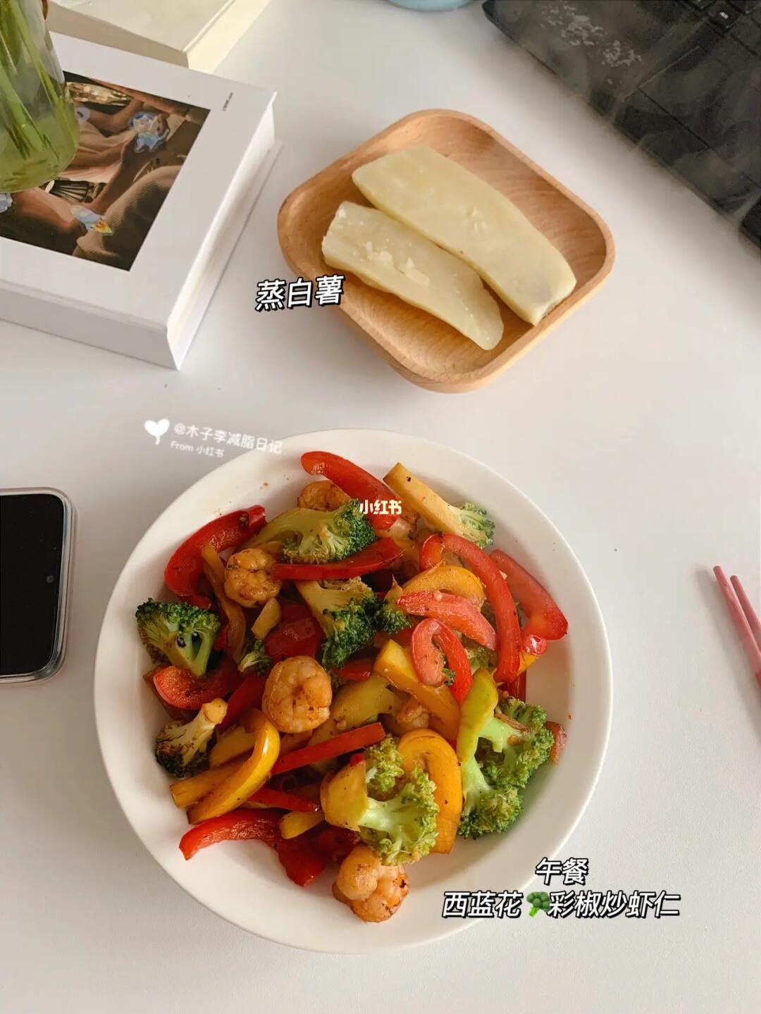 🥣午餐:彩椒西蓝花炒虾仁|白薯