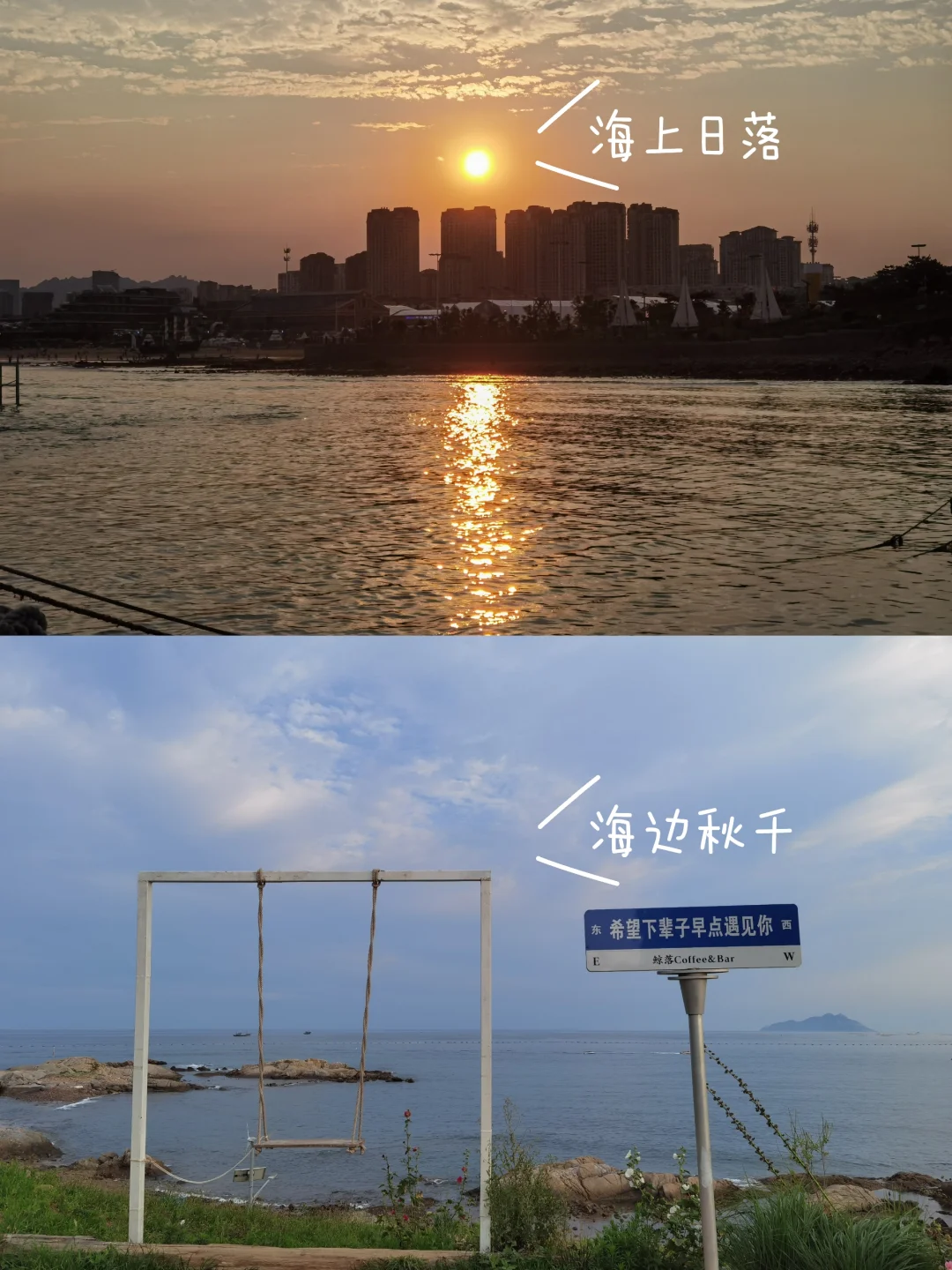 沙子最细,面积最大的沙滩,讲真比石老人好太多了,免费冲脚!水也很清澈,现在人还少了!快来!再往前走就是鲸落咖啡,有海边秋千,还可看日落哦~