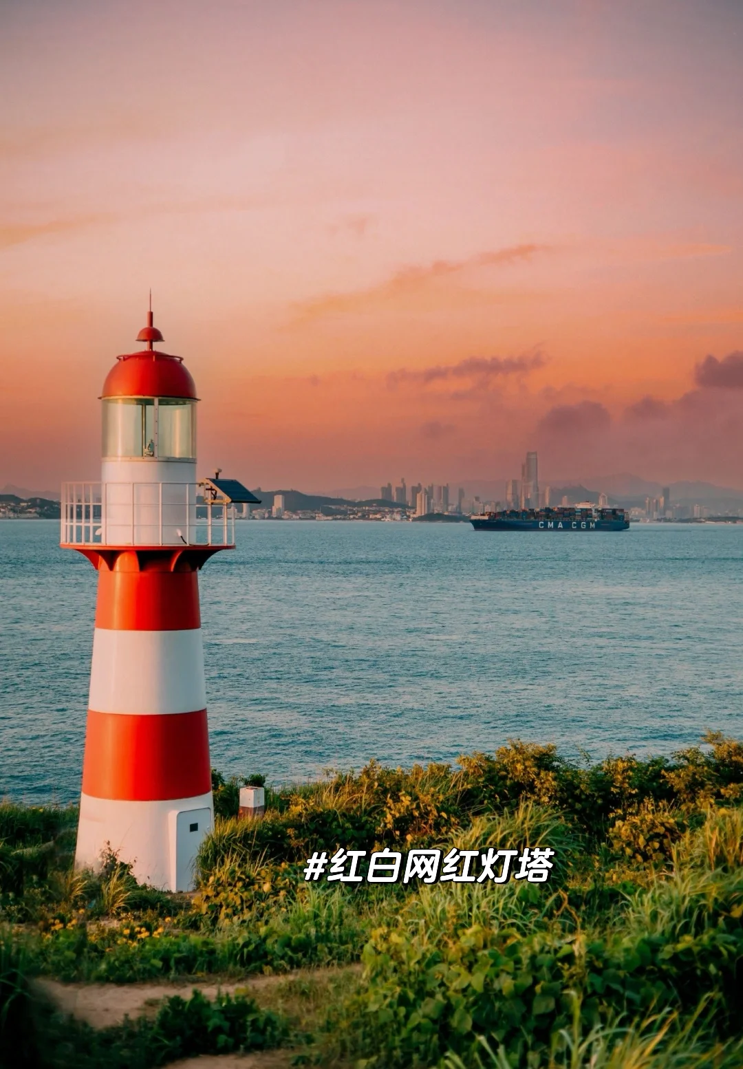 孤独的红白灯塔可以俯瞰青岛老城区,还有彩色货轮可拍📸,拍完沿着木栈道下去走走~