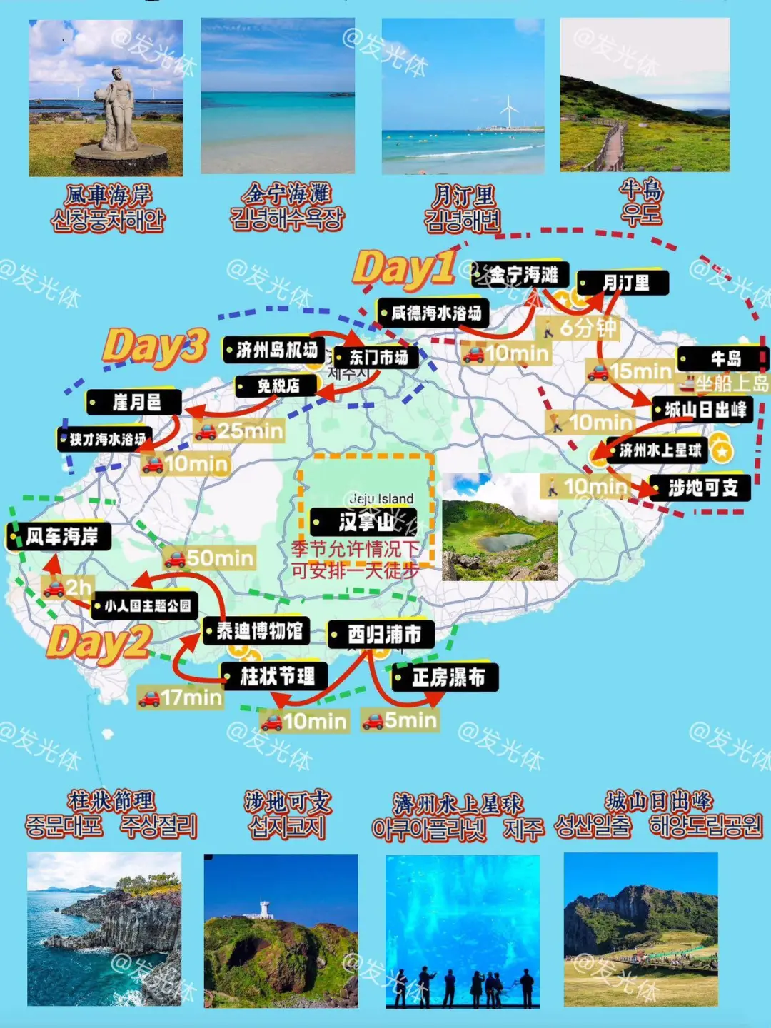 手绘了一张济州岛的玩游线路,大概可以安排2-3天的行程!见图3