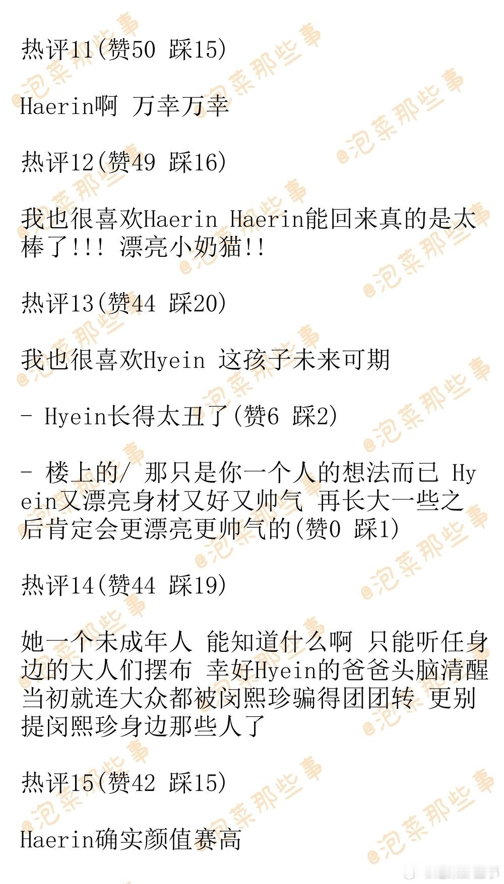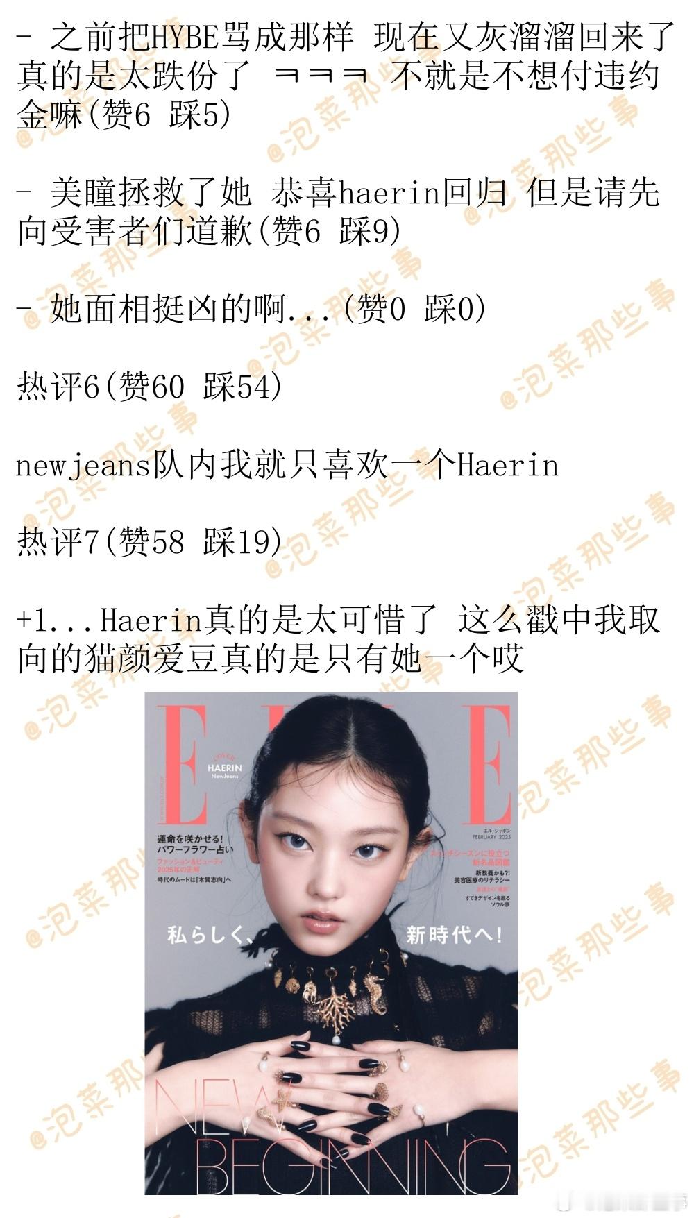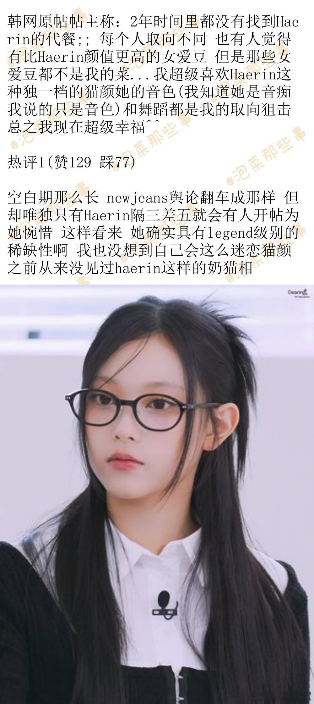 🔥韩网热帖评论翻译🔥NewJeans姜海粼回来真的是太好了韩网原帖帖主称:2年时间里都没有找到Haerin的代餐;; 每个人取向不同 也有人觉得有比Haerin颜值更高的女爱豆 但是那些女爱豆都不是我的菜...我超级喜欢Haerin这种独一档的猫颜 她的音色(我知道她是音痴 我说的只是音色)和舞蹈都是我的取向狙击 总之我现在超级幸福^^cr.pann