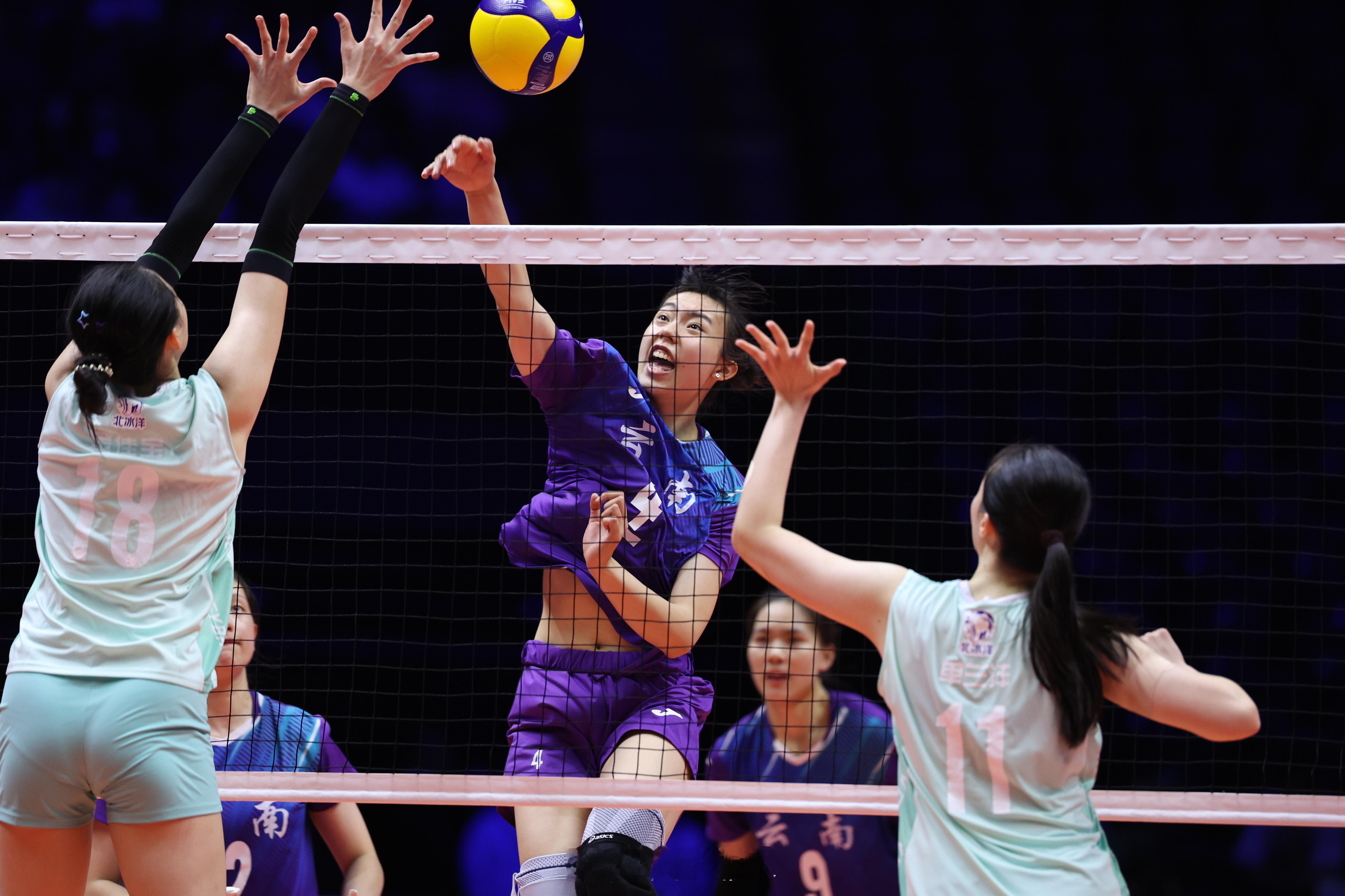 女排成年组小组赛,11月14日下午,A组的云南女排和B组的辽宁女排以3-0分别战