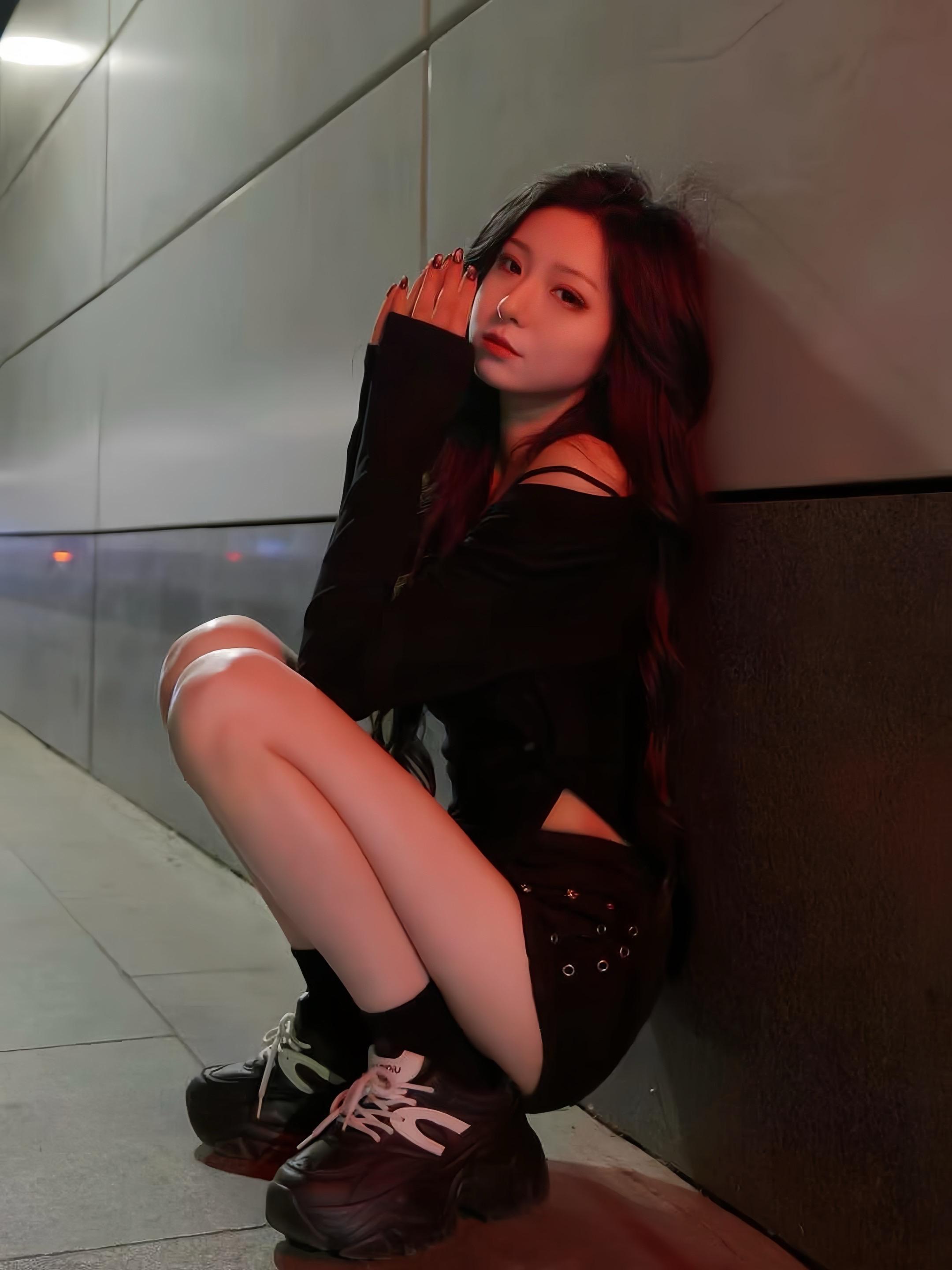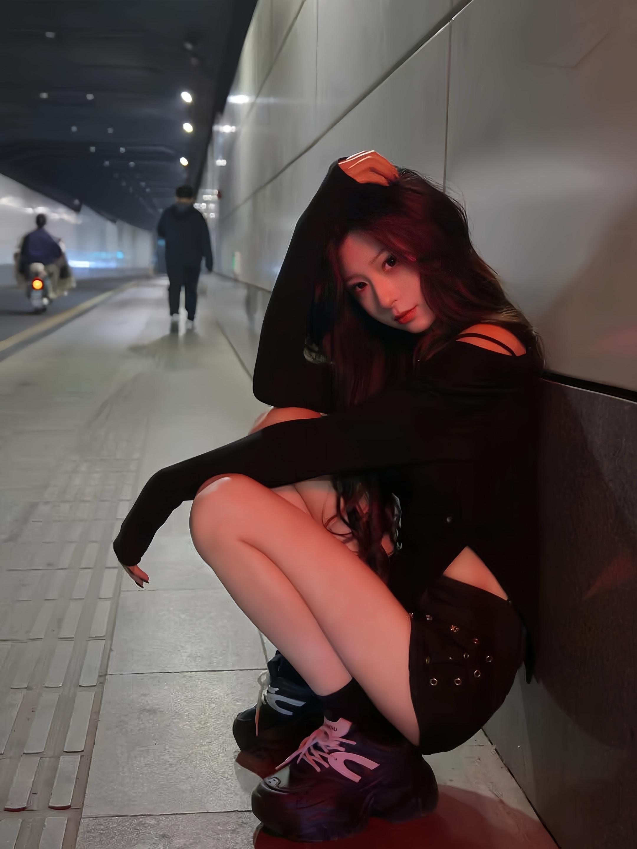 优雅坐楼梯,白裙飘飘,粉色高跟鞋,自然光下更显清新