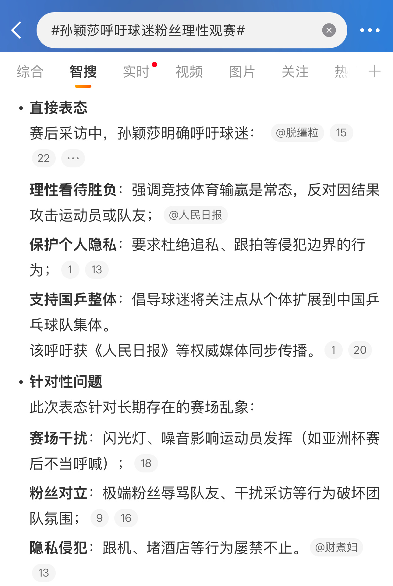 运动员都亲自出来呼吁理性观赛了在→_→热门第一条,仍然看到的是一如既往的粉丝群体甚至还用上了给微博智搜喂料的方式