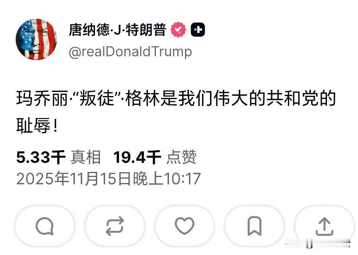 特朗普与曾经的盟友格林彻底决裂了,那么他们是如何走到这一步的? 格林曾经是特朗普盟友,在2024年总统大选时,多次为特朗普助阵。特朗普上台后,格林公开表示,特朗普应宣布全国紧急状态,用军队解决移民问题,特朗普实施了这一措施,双方关系融洽。 然而最近近几个月来,格林从医疗保健到加沙问题,再到爱泼斯坦的档案,她在诸多议题上都与特朗普立场相左,导致两人关系日渐疏远。 前几天,格林公开批评特朗普过于关注外交政策,而没有在国内大力推行其内政议程,矛盾开始激化,特朗普亲自回应了这一问题。 此外,格林要求公布爱泼斯坦档案,再次成为焦点,双方矛盾最终演变成一场混乱的攻击。