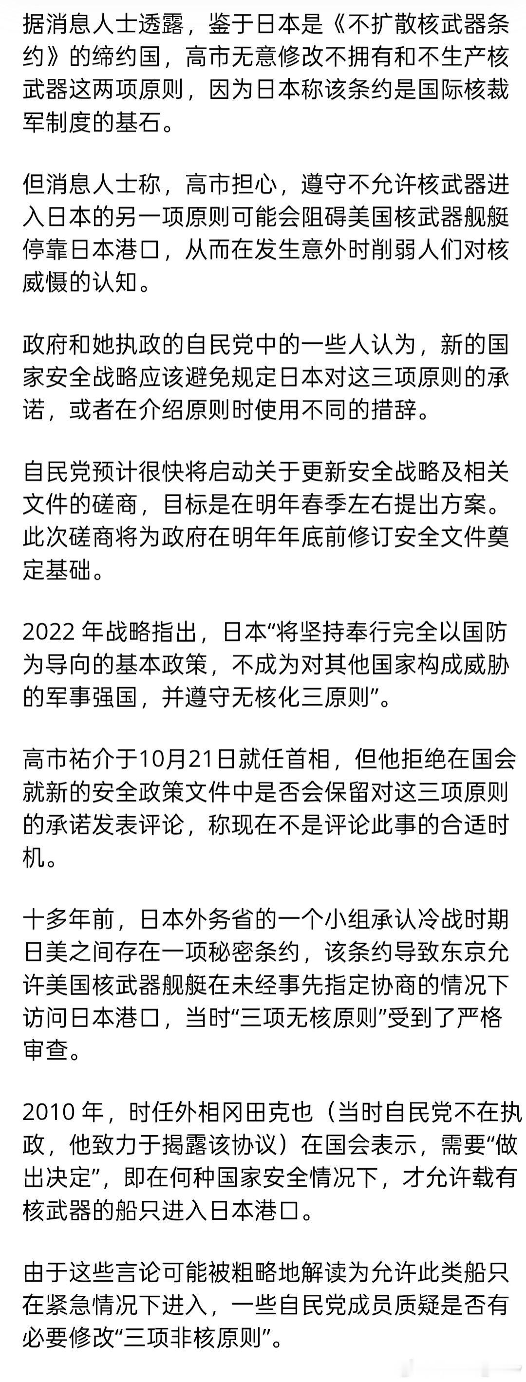 🚨日本首相高市早苗被爆考虑修改日本长期坚持的“无核三原则”