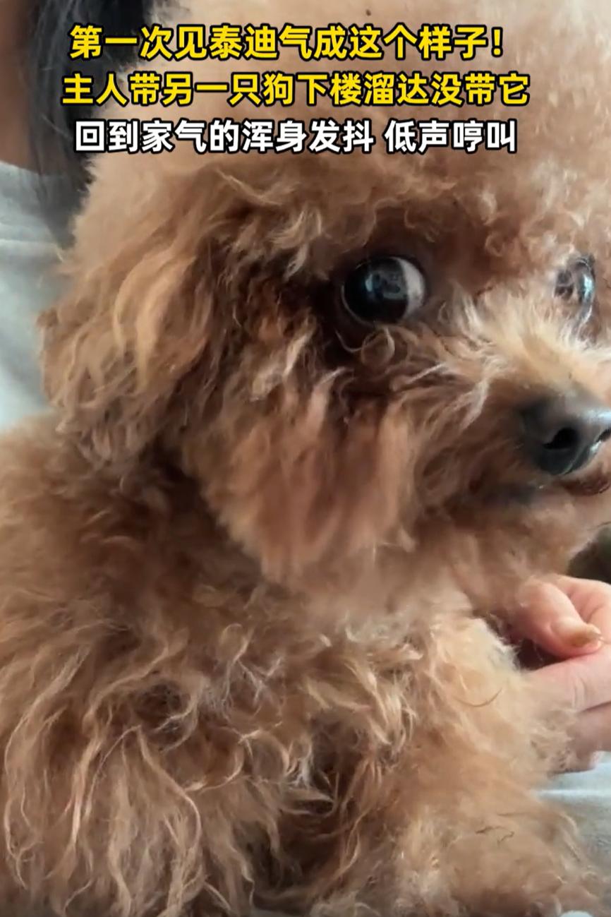 原来生气是真的会气到发抖!女子带着家里的小狗出门遛弯,回家后却发现另一只小泰迪一
