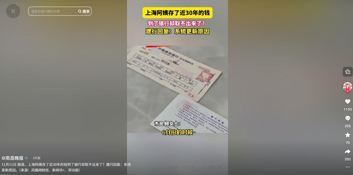 上海,大妈拿着两张28年前的定期存款单,去银行取钱,却被告知存单时间太长了,找不到她的存根,被拒绝取款。大妈:我有存单就证明我存了钱,你们存根找不到了,凭什么不让我取钱?网友:只要存单是真实的,银行就要无条件兑付,找不到存根是你银行内部的事,与储户无关! 最近上海顾大妈的遭遇,让不少人心里犯嘀咕:银行的信任底线到底在哪儿?顾大妈在家打扫卫生,偶然翻出了两张压箱底的旧纸片,那是 1997 年存的定期存单,总共 6000 块钱,上面的存入时间、三年定期期限、自动续存的标注都清清楚楚,还有手写更正的痕迹和银行鲜红的盖章,一看就是实打实的凭证。 这两张薄薄的纸,在抽屉里躺了 28 年,对顾大妈来说,不只是一笔存款,更是当年一家人省吃俭用攒下的积蓄,是对银行百分百的信任,可谁能想到,当她兴冲冲拿着存单去银行取钱时,这份信任却被泼了一盆冷水。 银行柜员对着电脑查了又查,来来回回折腾了半天,给出的答复让顾大妈懵了,系统里压根没有这笔存款的记录,没法兑付。 顾大妈不甘心,就这么一趟趟跑银行、催进度,可足足等了三个月,得到的还是那句 “查不到”,银行工作人员解释,当年的存款记录都是手写的,这么多年过去,系统升级了好几轮,加上顾大妈名字里有个生僻字 “珮”,当初录入的时候可能用了同音字 “佩”,之后又手动盖章更正过,现在到底是哪个环节出了问题,根本说不清楚,他们的意思是,必须找到当年的纸质存根,才能给顾大妈办理取款。 这话让顾大妈又气又急,她想不通:“我手里拿着你们银行开的存单,上面章也有、信息也全,这还不能证明我存了钱吗?你们自己把存根弄丢了,或者系统查不到,那是你们内部管理的问题,凭什么不让我取钱?”顾大妈的质问,说出了好多人的心声,这件事传到网上后,瞬间引发了全网热议,网友们几乎一边倒地站在顾大妈这边。 有网友直言:“只要存单是真实有效的,银行就该无条件兑付!找不到存根是你银行自己的事,跟储户有什么关系?”还有人吐槽这种双标:“要是我们欠了银行钱,别说 28 年,就算过个十年八年,银行照样能把账算得明明白白,掘地三尺也得把钱追回来。怎么到了银行欠储户钱,就拿‘查不到’当挡箭牌了?” 大家之所以这么气愤,不只是为顾大妈抱不平,更是因为这件事戳中了所有人的痛点,我们把钱存进银行,图的就是一个安全、放心,相信银行能守住这份契约,可现在一张盖着银行公章的存单,竟然抵不过一句 “系统里没有”,这让大家怎么还敢放心把 “钱袋子” 交给银行? 更让人在意的是,1997 年的 6000 块钱,可不是个小数目,有网友算了笔账,当年的物价水平和现在没法比,那时候的 6000 块,差不多相当于现在的六万多,是普通家庭实打实的血汗钱。 顾大妈当年愿意把这么一大笔积蓄存进银行,就是源于对银行的绝对信任,可这份信任,却因为银行的管理疏忽,被晾在了一边,从法律上来说,《商业银行法》早就明确了 “取款自由” 的原则。 银行系统升级、数据迁移是自己的工作,不能因为这些内部问题,就侵犯储户的合法权益,其实正确的做法很简单,先承认存单的有效性,把钱兑付给顾大妈,之后银行再慢慢内部核查几十年前的旧账,到底是录入错误还是存根丢失,慢慢找原因就是了。 可现在银行却把证明的责任推给了储户,让顾大妈为他们的工作失误买单,这实在说不过去,顾大妈的遭遇,也给大家提了个醒,现在都是数字化时代,我们习惯了用手机银行、电子凭证,可真到了关键时刻,还是那张泛黄的纸质存单最靠谱。 银行总说系统多先进、管理多规范,可一旦系统查不到记录,就把储户拒之门外,这哪里是为储户服务,分明是在推卸责任。 (信息来源:南昌晚报)