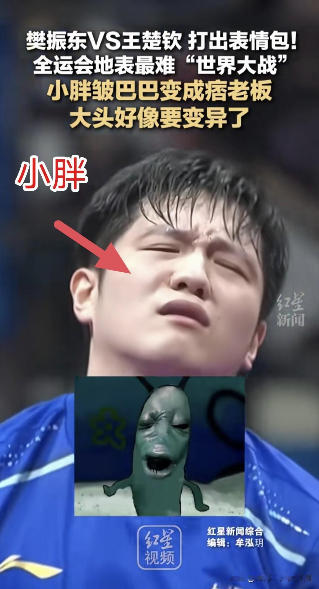 简直笑不活了! 果然最难的不是世界冠军,而是全运会冠军啊。 这还只是半决赛,樊振东和王楚钦便上演了一次惊天地泣鬼神的巅峰对决。 一个打得生无可恋,怀疑人生。 一个打出了痛苦的面具,面目狰狞。 恭喜樊振东可以提前锁定冠军了。
