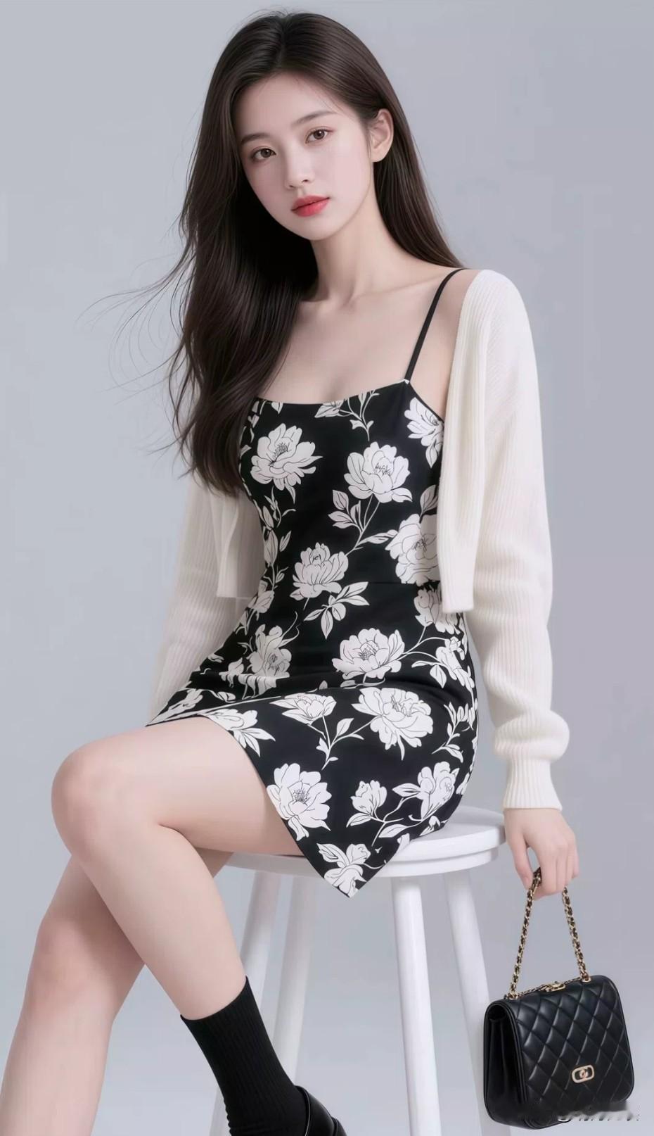 优雅黑裙搭配米色毛衣,简约时尚,尽显女性魅力!