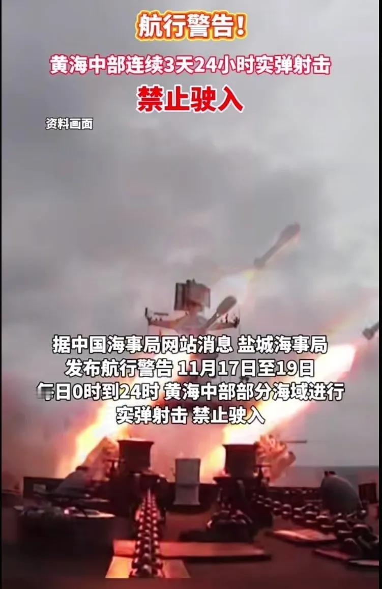 这回是真的 不是开玩笑 “实弹射击”三天 “实弹射击”三天,黄海中部实弹射击,这次可不是什么“演习演练”,这次实弹射击与以往的“演习演练”可不是一回事,以往的都是“演习演练”,这次可是直接实弹射击三天,态度明显强硬。 黄海中部可不是随便射击的地方,这个地方紧邻中韩经济区,战略位置敏感,对驻日美军和日本形成压力。这次实弹射击的目的很明确,就是对高市早苗涉台言论的不满,传递“绝不姑息”的立场。 这次全天候射击,展示作战能力的也明确捍卫主权的决心,警告任何外部势力不要干涉中国的内政。国家主权和领土完整是一个中国的底线,实弹射击就是对错误言论的直接回应,任何试图挑战中国核心利益的行为,都没有好下场。今日的中国已经不是谁可以攀比和碾压的了! 实弹射击能有效检验部队的实战能力。实弹环境下士兵的心理素质和作战技能会得到更真实的考验,能发现平时训练中难以察觉的问题,从而针对性地改进,提升部队整体战斗力。 这次实弹射击是一次有力的外交发声。近年来,部分国家在涉台等问题上频繁挑衅,中国通过这种强硬的军事行动,向国际社会表明维护国家核心利益的坚定立场,让那些企图干涉内政的国家认识到其行为的严重性。 从战略威慑方面,黄海中部的实弹射击对周边相关势力形成了强大的威慑。驻日美军和日本在军事部署上会有所顾虑,不敢轻易采取冒险行动,一定程度上稳定了地区的军事态势。 这一行动极大地振奋了民族精神。民众看到国家有能力、有决心捍卫主权,会增强对国家的信心和认同感,激发爱国热情,凝聚起强大的民族力量。