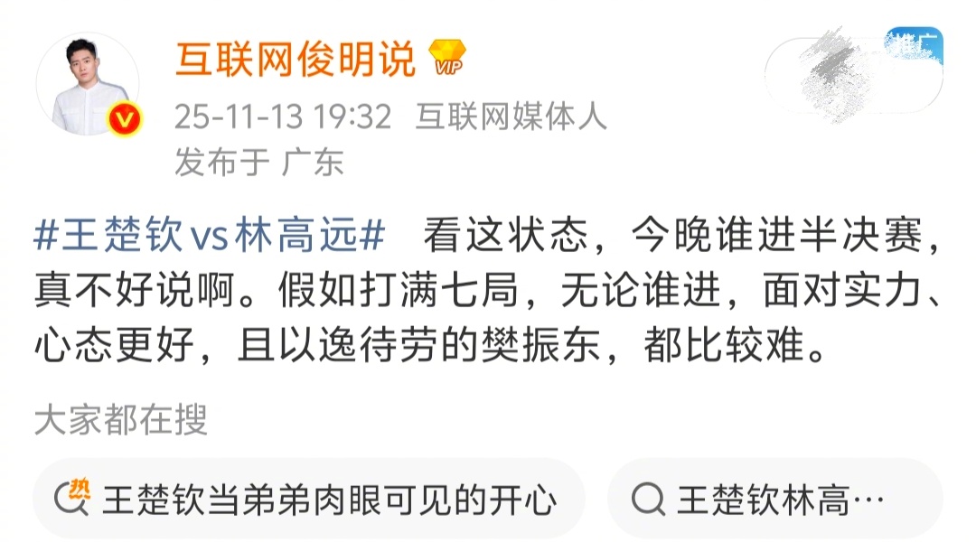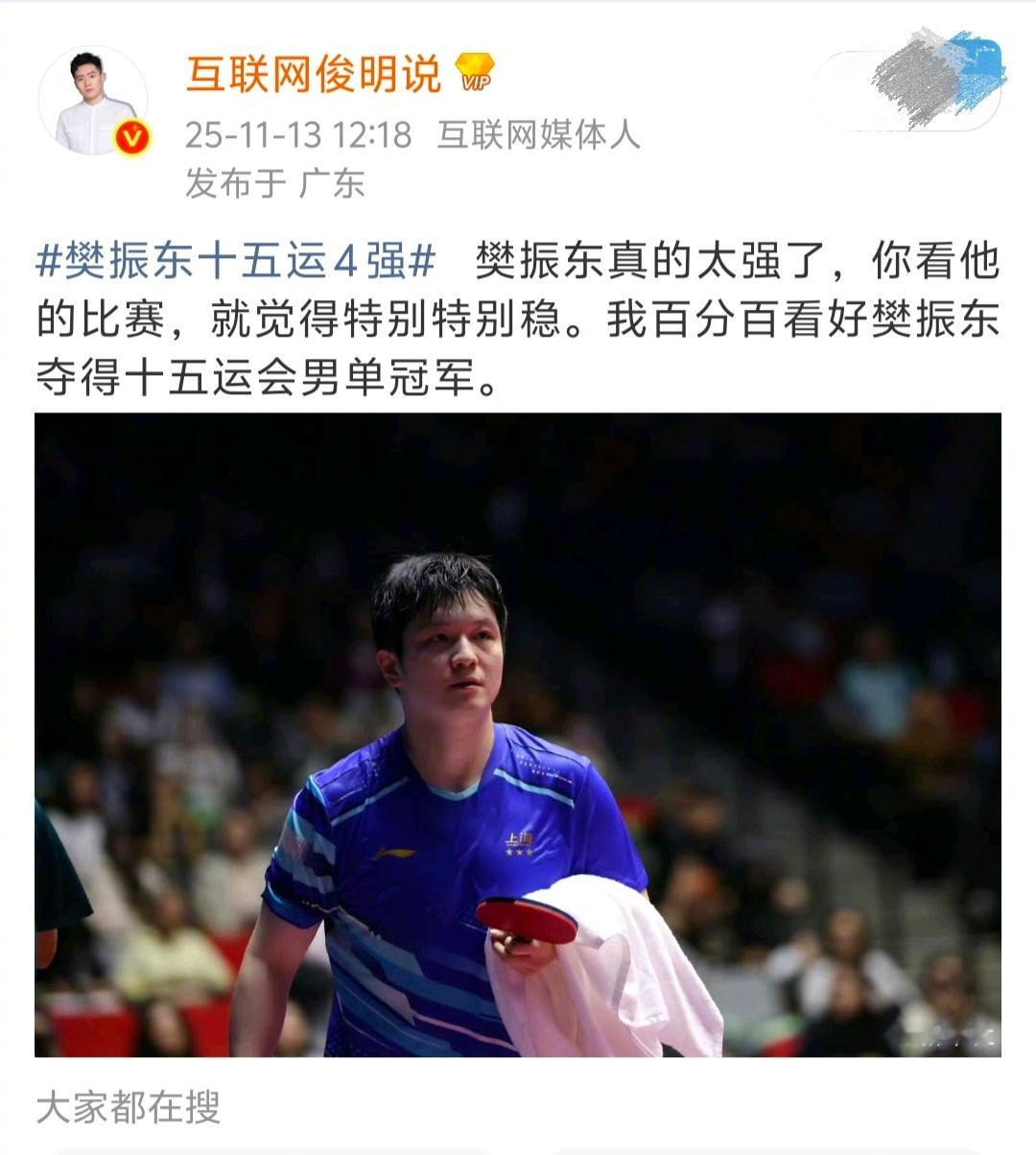 一开始我就坚信樊振东会夺冠,一点没错。目前国内球员实力,樊振东第一,王楚钦第二,林诗栋第三。林诗栋给樊振东制造的麻烦,比王楚钦小得多。林诗栋年龄还小,未来是属于他的。