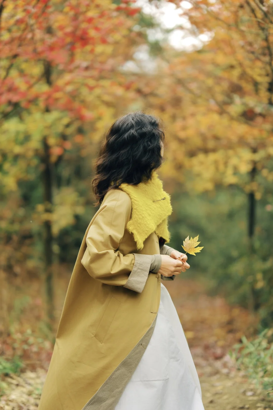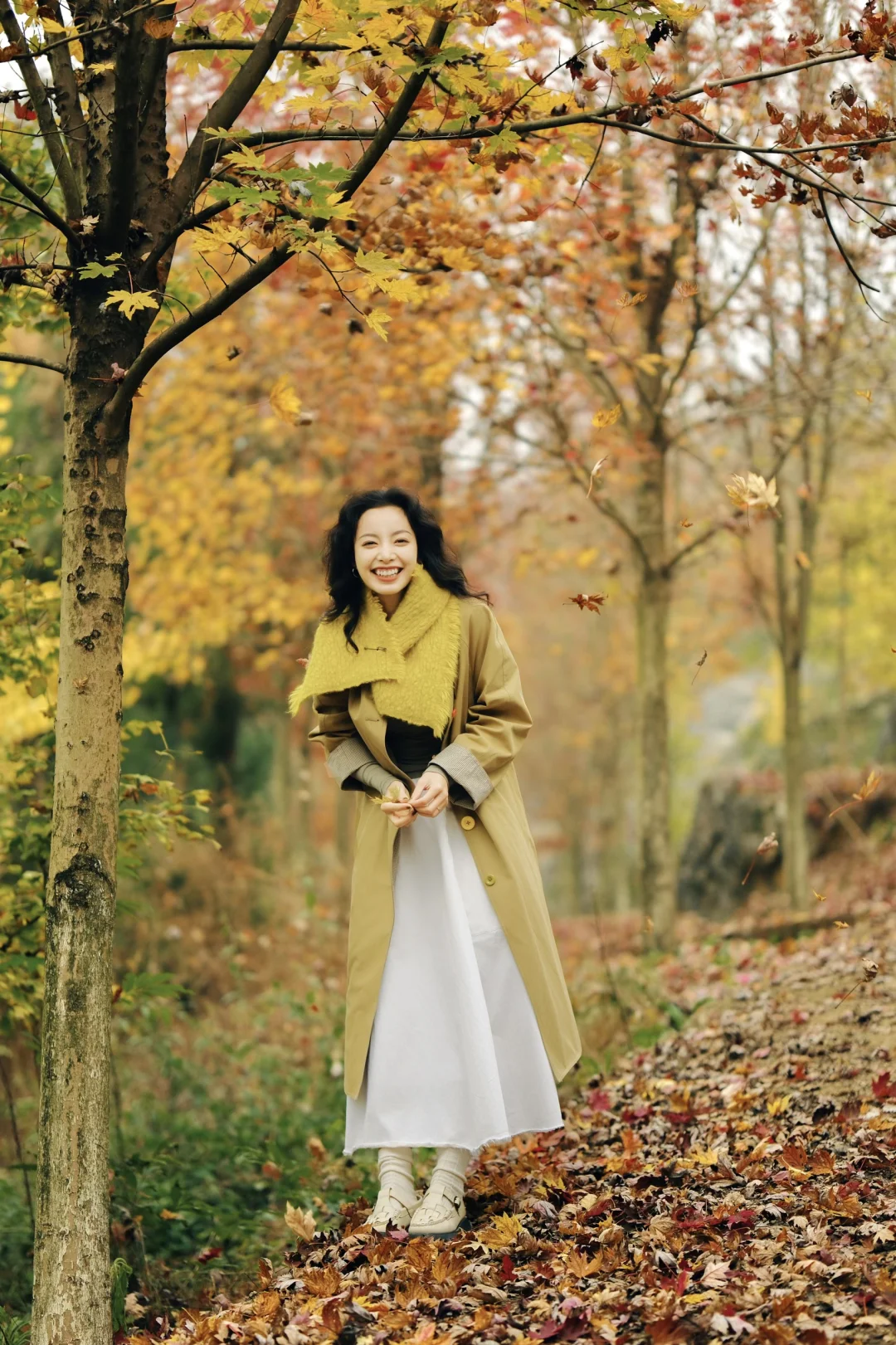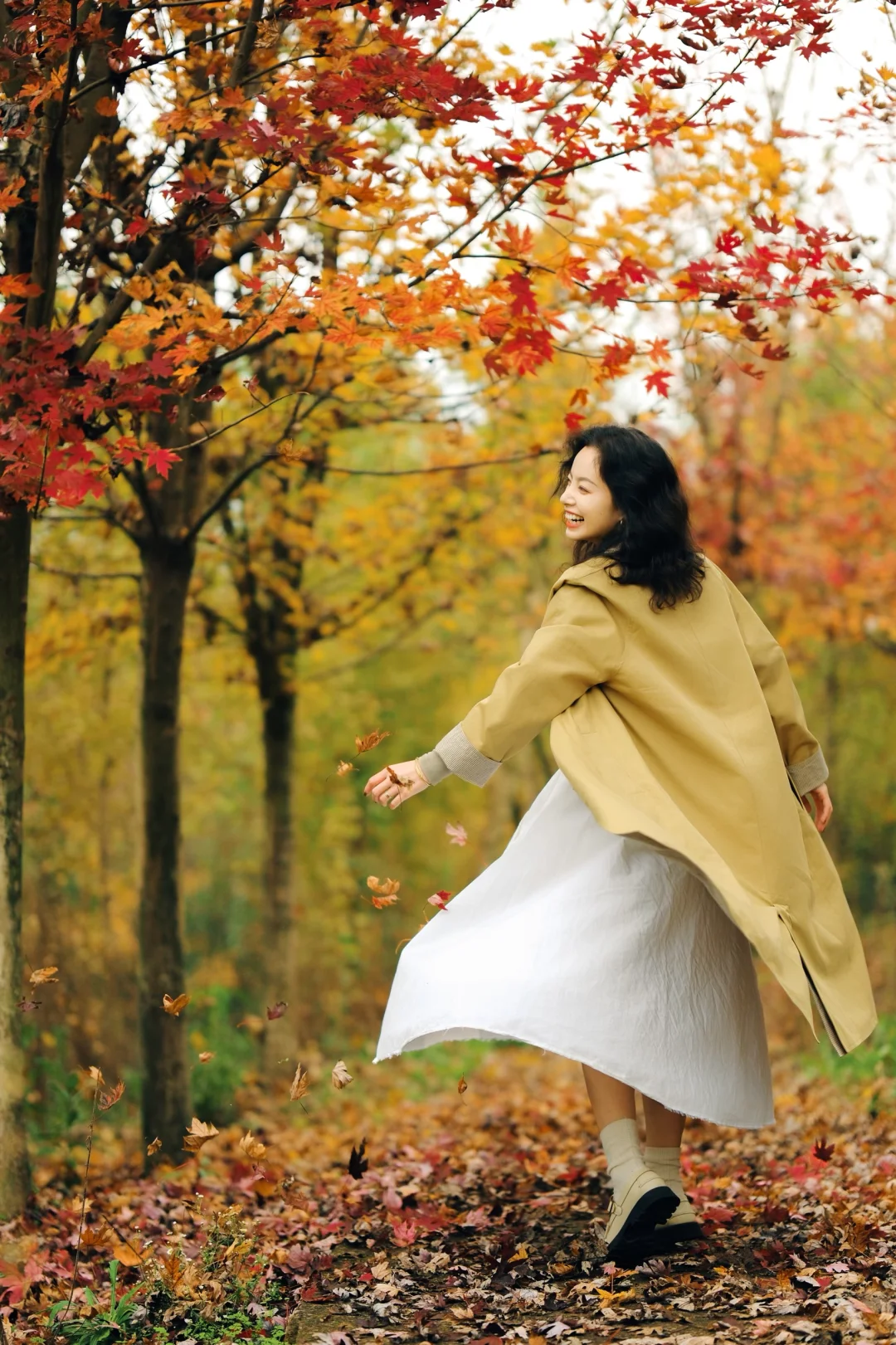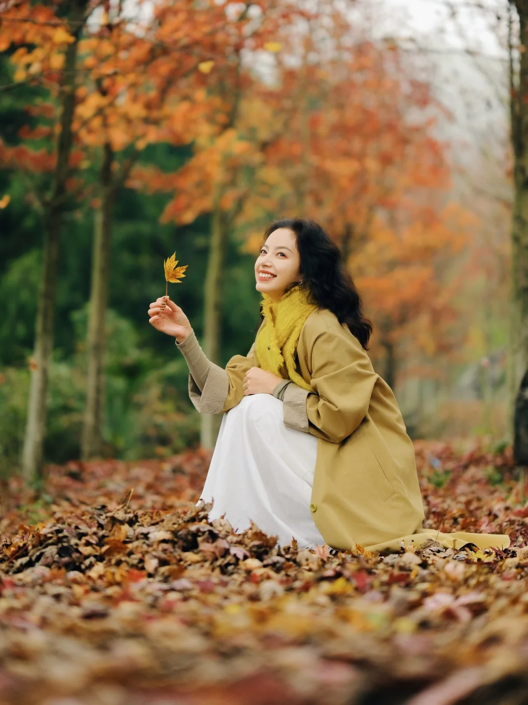 3️⃣挑选形态、色彩比较好的枫叶,拿在手里或扎成小束,拍照时自然摆弄,能让人物状态更放松
