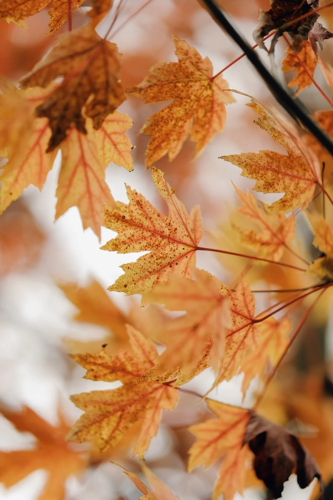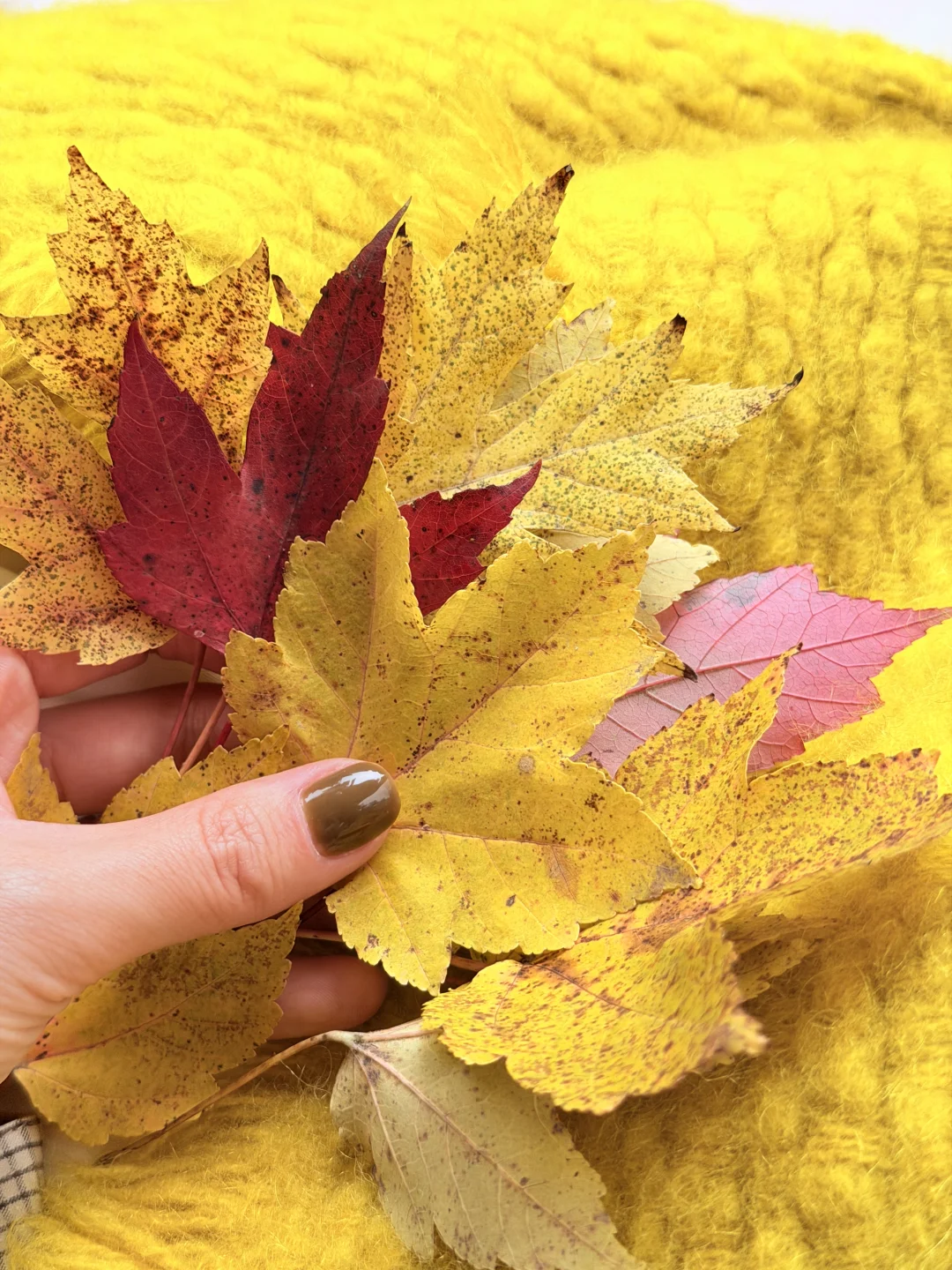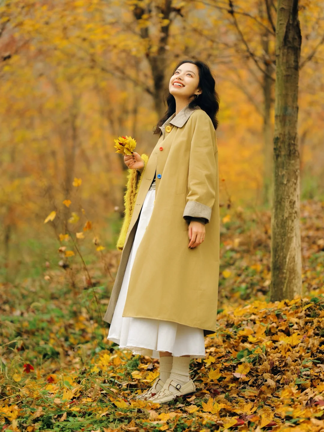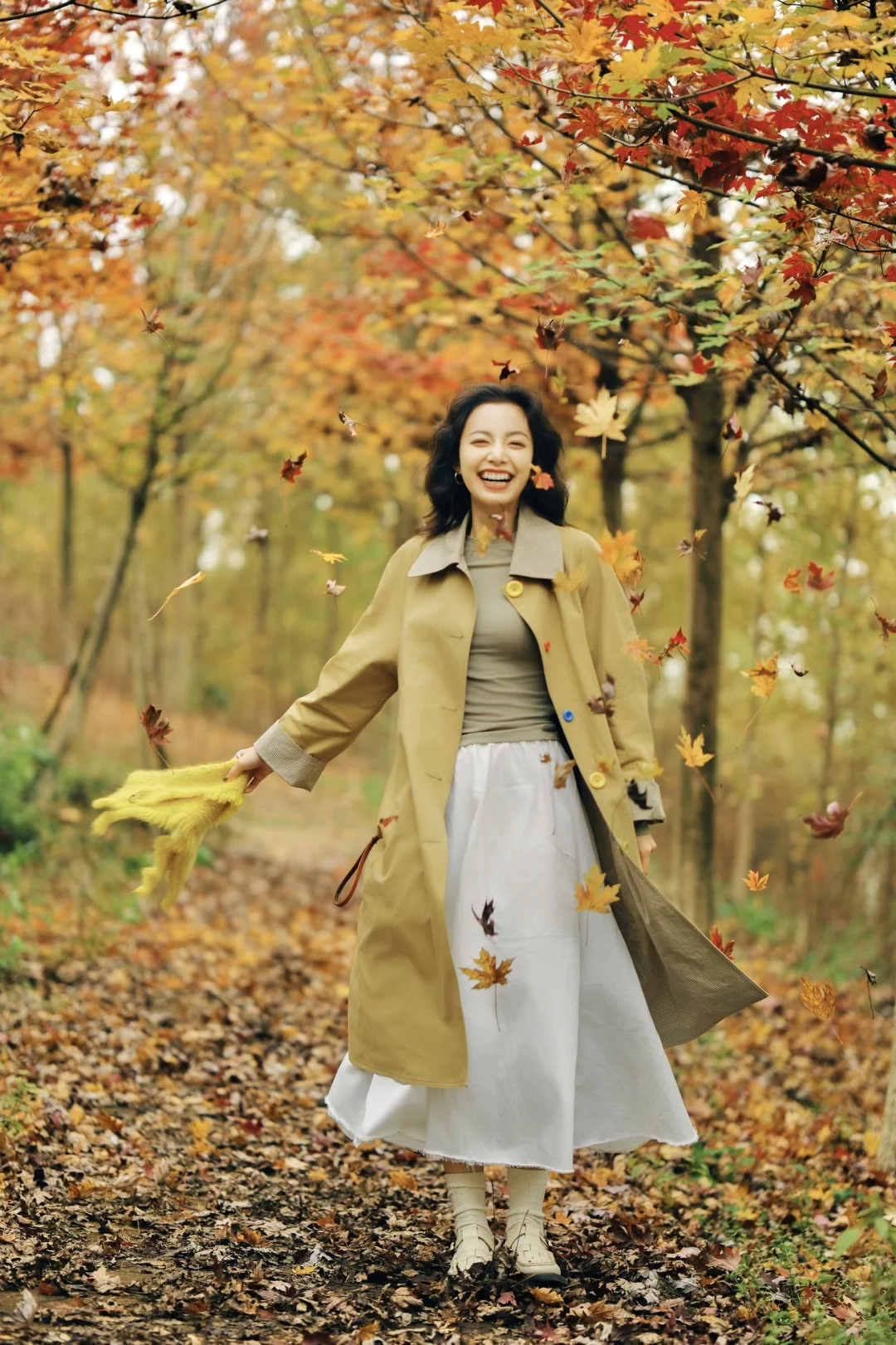 3️⃣挑选形态、色彩比较好的枫叶,拿在手里或扎成小束,拍照时自然摆弄,能让人物状态更放松