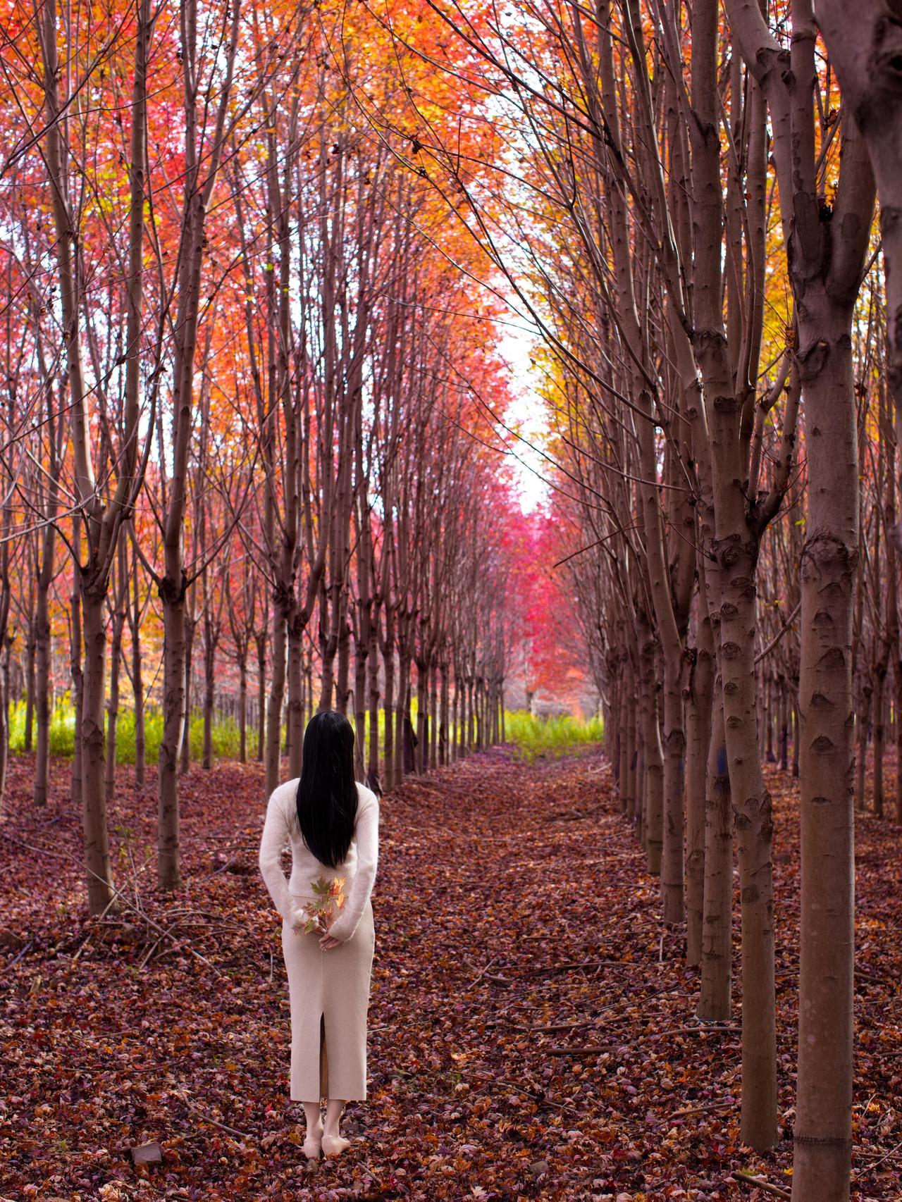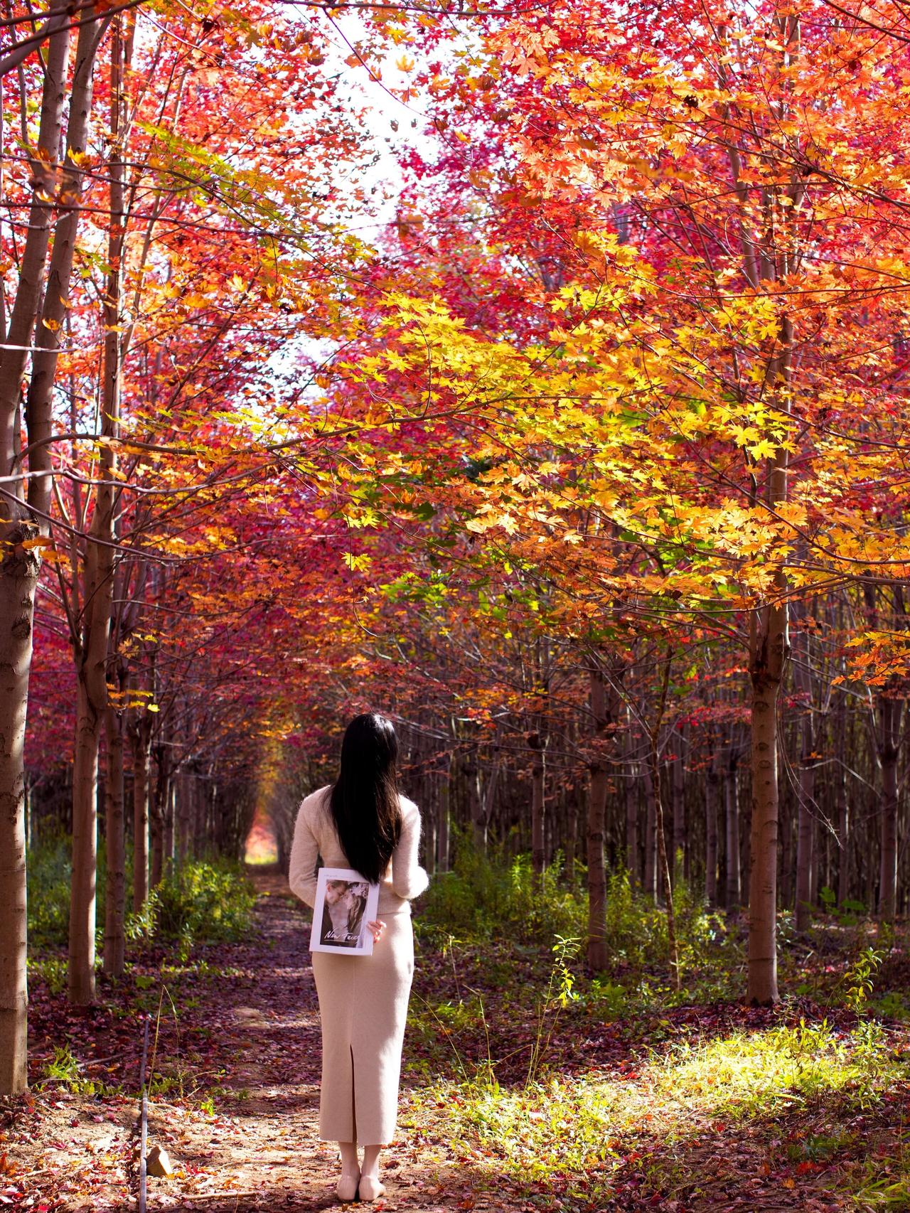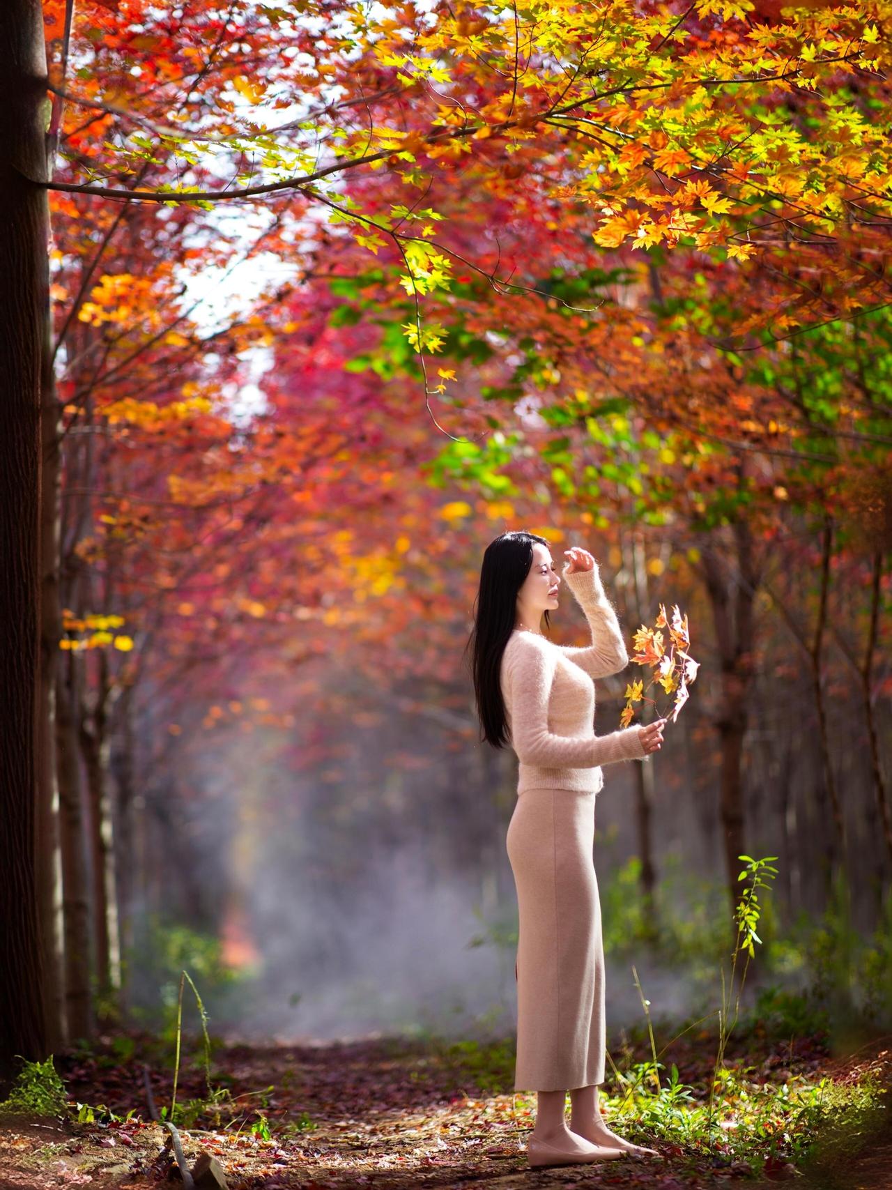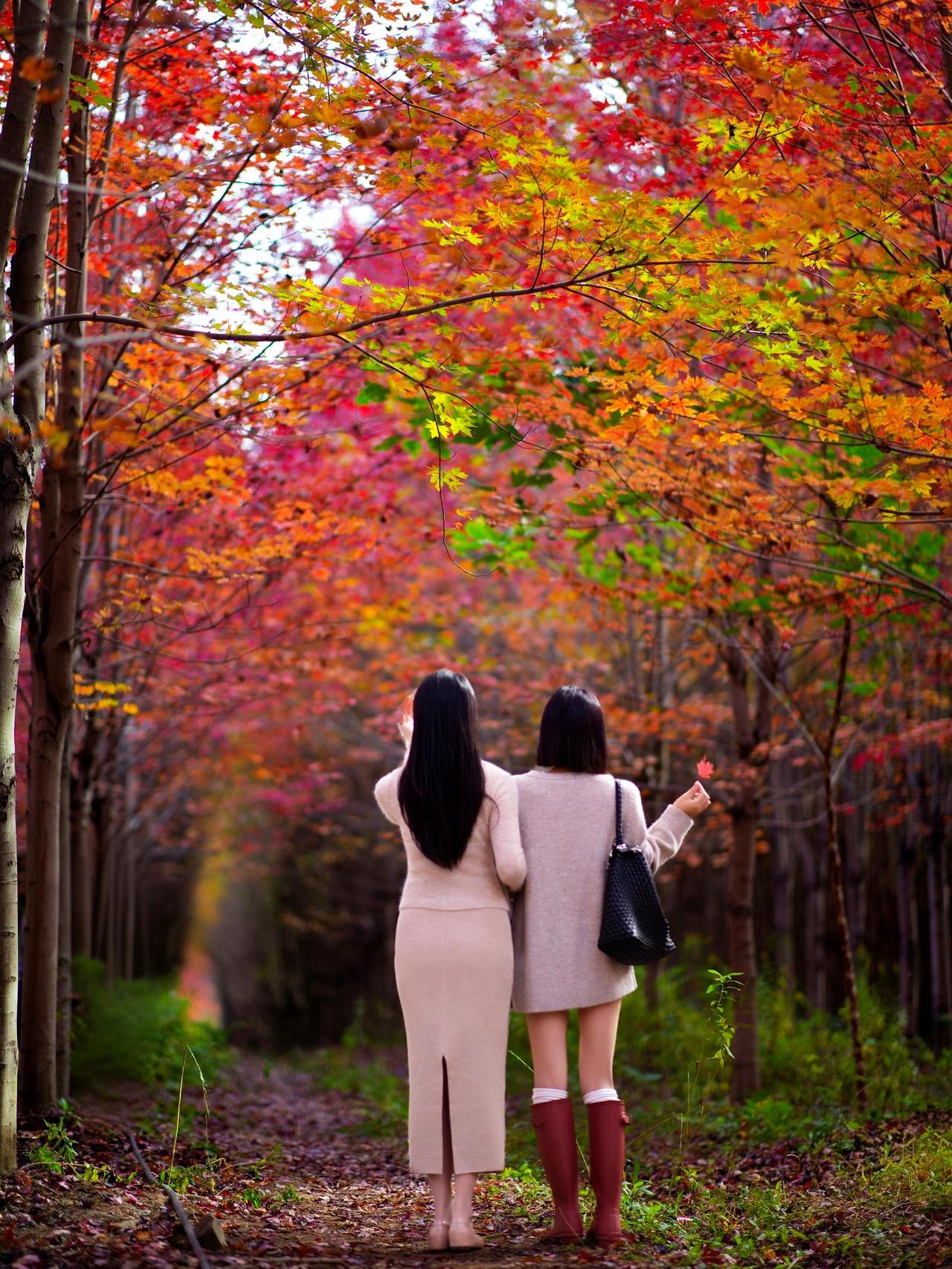 风把秋意揉进每片枫叶里,铺成一条通往绯色梦境的路。她踩着碎金般的落叶走进去,指尖兜住几缕红,像接住了季节的信笺。 林道把天空裁成窄窄的绸,红的炽、黄的柔,裹着她的身影漫成一幅流动的诗。后来风又牵来另一个身影,衣摆碰着衣摆时,秋便有了双生的温柔。 抬臂时,叶尖碰碎光斑,落进眼里是半季的暖。这秋不是终点,是风与叶、我与你,在时光里轻叠的一帧浪漫。 = = = = = = = = = = = = = = = = = = = = = = 【秋日人像摄影思路|把树林拍成电影感】 ①构图:用林道做引导线,人物后置留空,放大秋景的纵深感; ②色彩:浅米色穿搭中和浓烈红枫,形成低饱和柔焦感; ③动态:抓拍抬手/轻走的松弛感,让落叶与发丝同频; ④逆光时蹲低仰拍,光斑会裹满温柔。 【秋日人像参数参考】 📸 设备:全画幅+50mm f1.8 - 光圈:f2.0-2.8(虚化背景又保留叶片细节) - 快门:1/200s(抓拍动态不糊片) - ISO:100-200(晴天自然光足够,避免噪点) - 白平衡:5200K+1档红/黄(强化秋枫暖调)