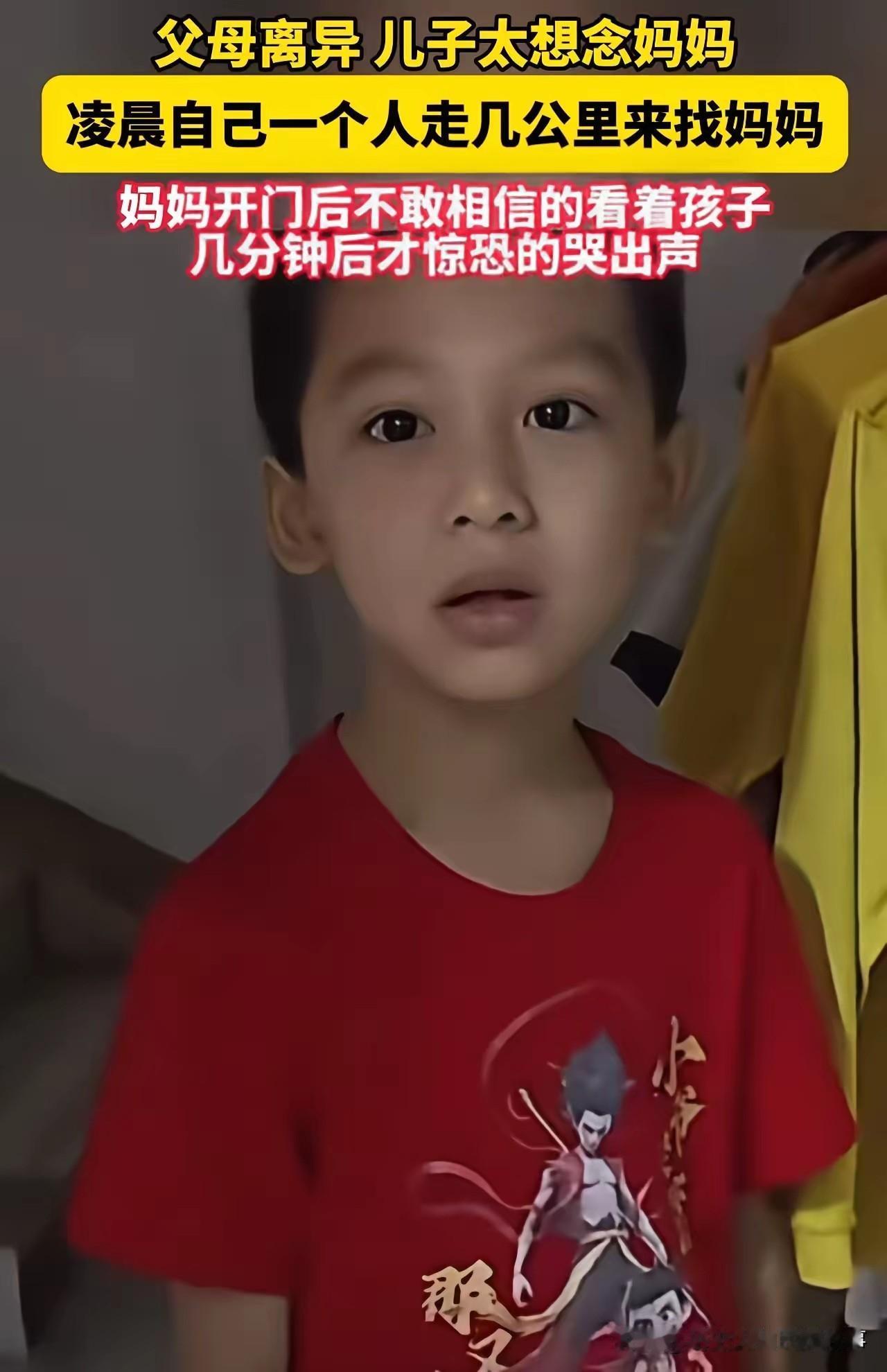 2025年11月9日凌晨5点多,广东一名父母离异的小男孩,因太想念妈妈,光着脚丫独自走了几公里夜路来到妈妈家门口。 据报道,男孩的父母离婚后,儿子判给父亲抚养。妈妈则在外租房居住,只有休息日才能短暂地见到儿子。当天凌晨,男孩穿着单薄的衣服,赤着脚偷偷从爸爸家跑出来,几经辗转来到妈妈的住处。当妈妈打开门,看到儿子站在门口时,一脸不敢相信,随后惊恐地哭出声来。她既心疼儿子独自走夜路可能遭遇危险,又对前夫不给抚养权却没照顾好孩子的行为感到愤怒和无奈。 此事在网络上引发热议,网友们纷纷指责父亲没有尽到监护义务,认为抚养权不是“战利品”,孩子的情感需求应该被重视。广东男童 8岁男孩河源 光脚丫男孩 素材来源于网络,侵权删除。