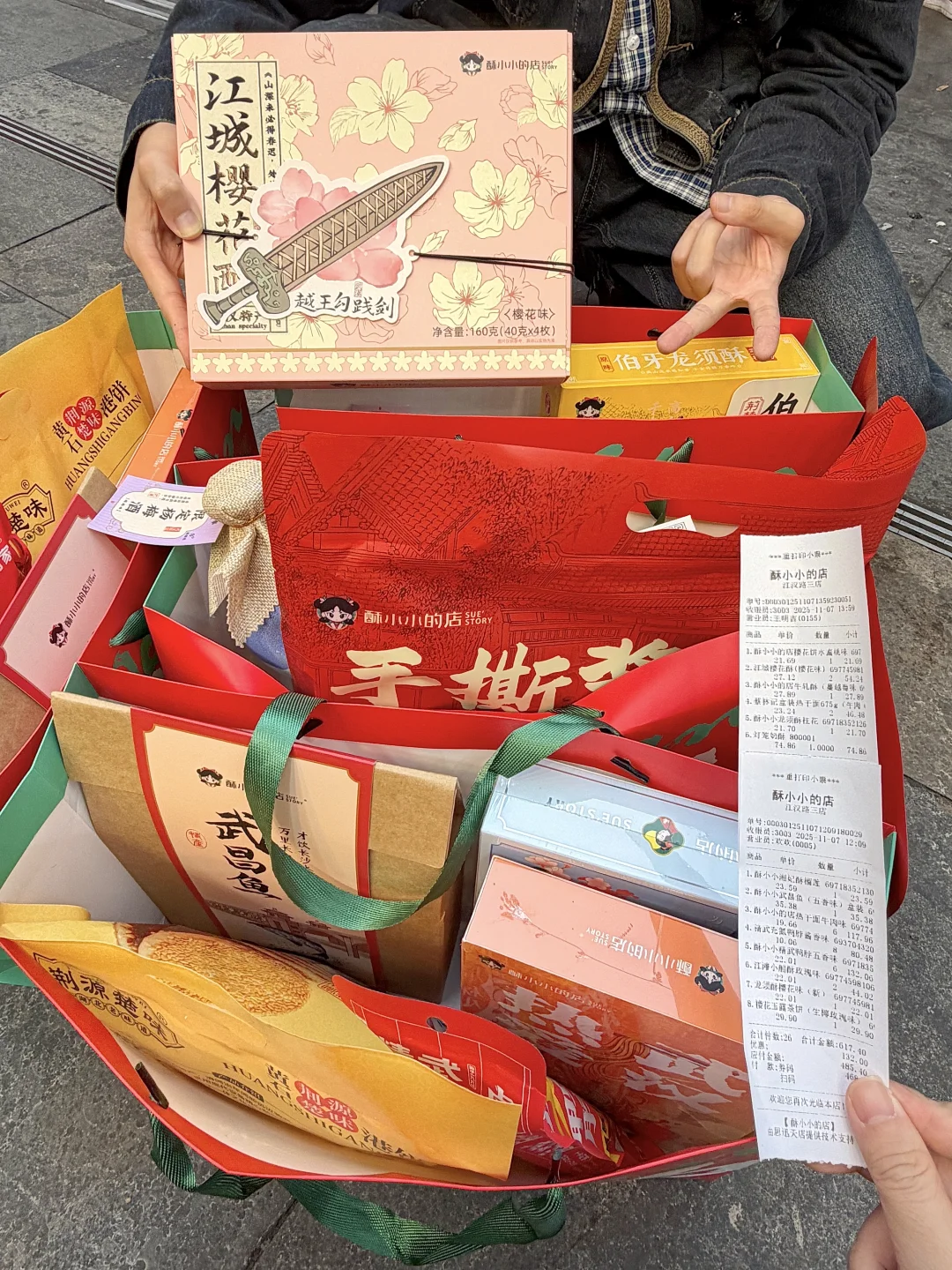 武汉本地人带路找的特色伴手礼店! 真心觉得不错!买了好多袋!明码标价好便宜! 店里小哥哥小姐姐都很热情,每款都有试吃试喝! 武昌鱼,酱板鸭,樱花酥,限定米酒,黄石小饼…… 除了特色美食小吃糕点之外,还有各种貌美精致的文创冰箱贴!!明信片!!挂件玩偶等…… 建议来武汉江汉路一定要进去(酥小小)这家!!!