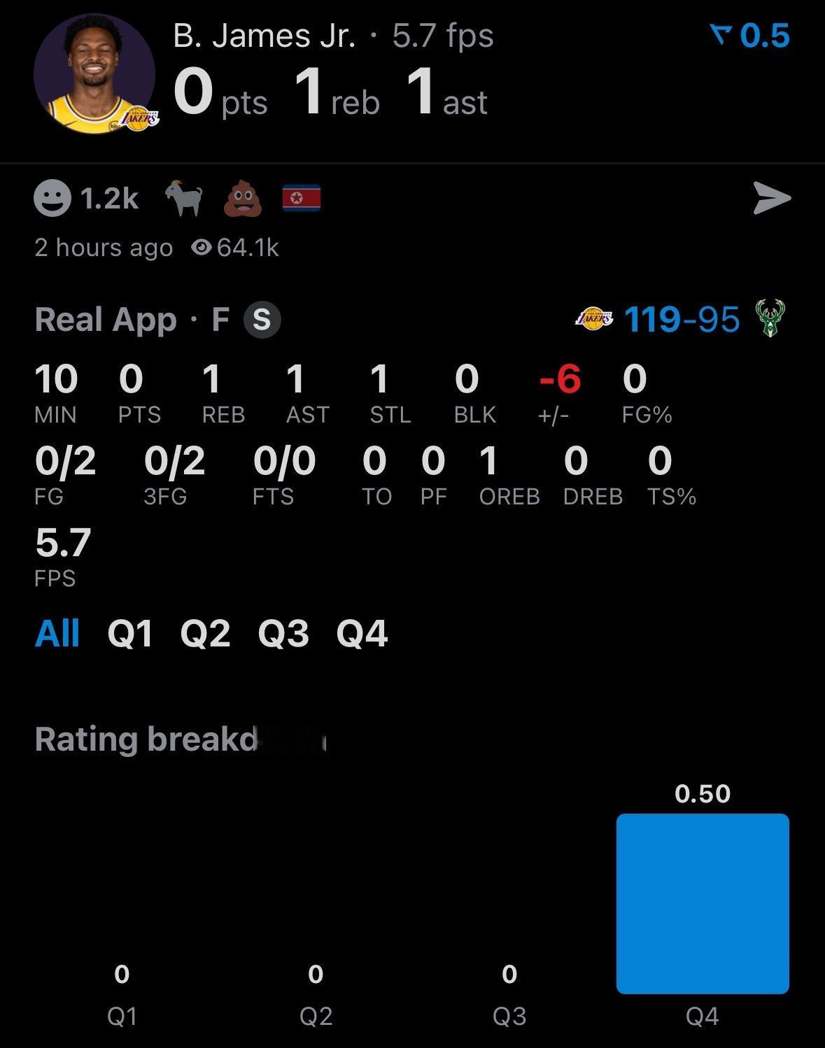 布朗尼上首发并不是没有作用,他可以迷糊对手湖人今天想草草了事。显然雄鹿中计了,上来就被湖人打爆,以至于全场落后。 给出评分: