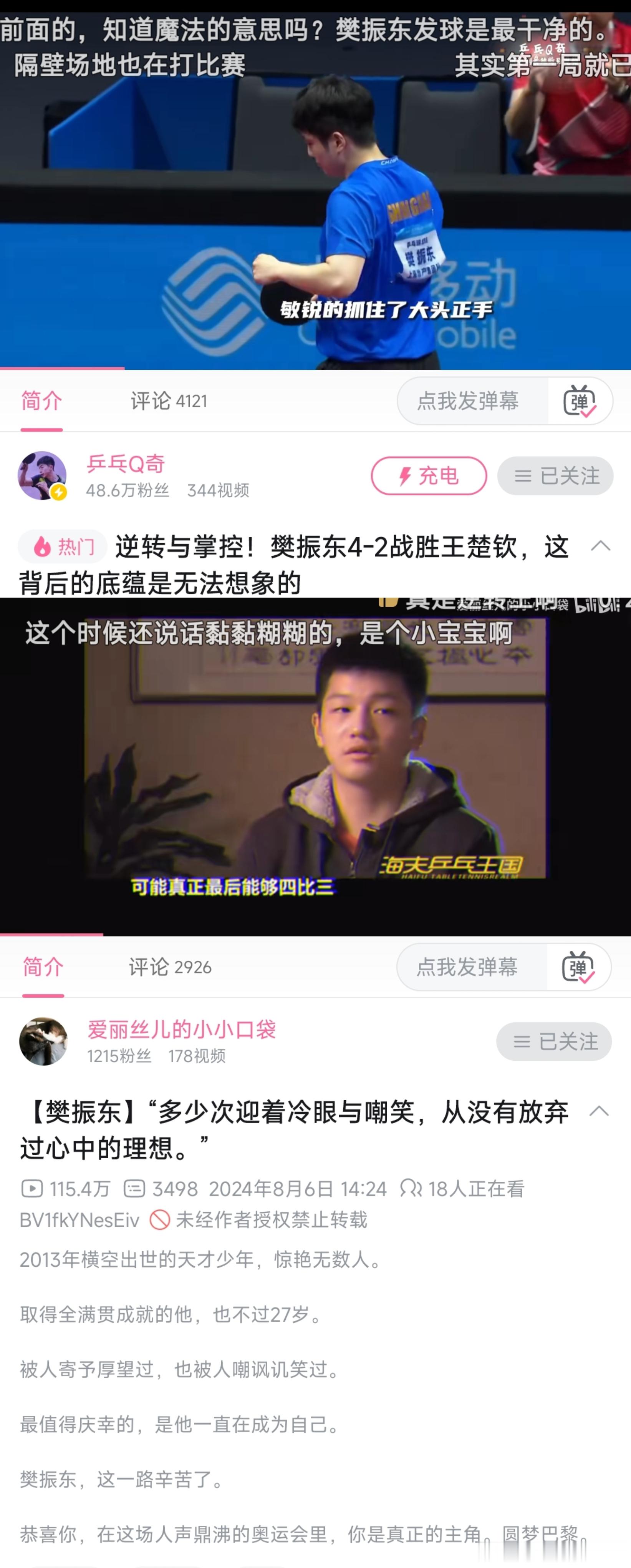 东哥牛批!樊振东的这枚逆转金牌含金量很高!小胖的实力不多说了隔壁站up体坛人物用视觉语言概括了樊振东一路走来,2862天大满贯的荣光,没有球迷不为此激动!小破站除了人物志还有很多类型的稿件,有全运会小胖每场比赛的深度解析和高燃混剪,大家来看!