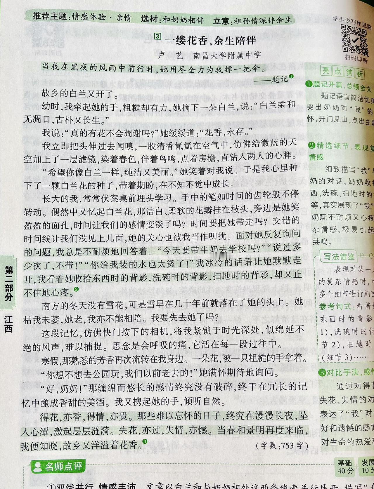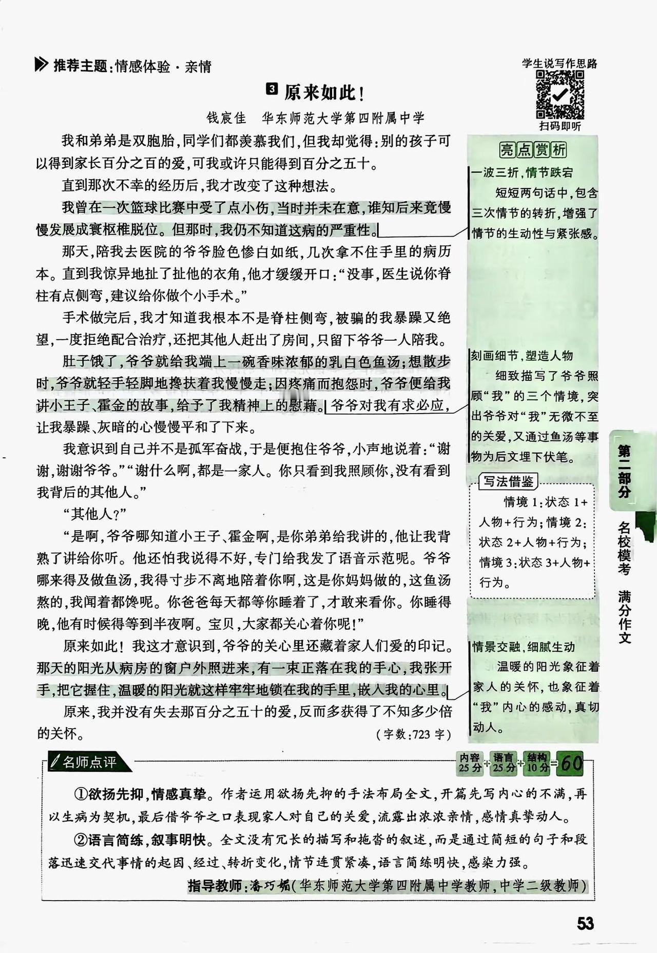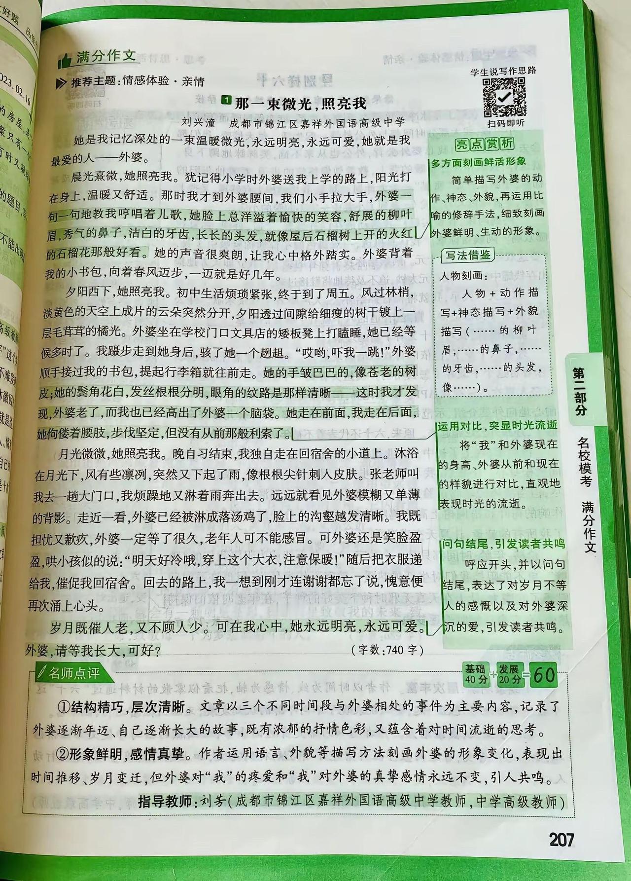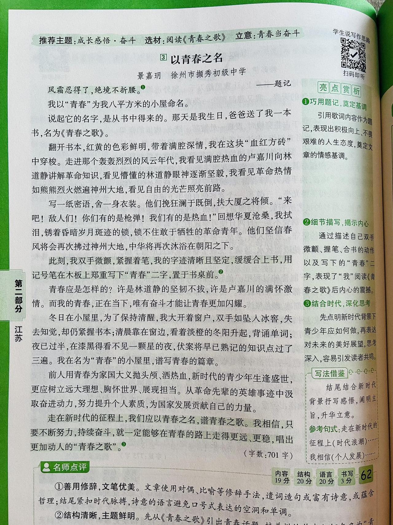 满分作文:独立天地间,清风洒兰雪 立夏那夜,疾风骤雨猝然而至。窗外桐花本已开到荼蘼,怎禁得起这般敲打?我在枕上听着那噼啪声,想起李煜词中"林花谢了春红,太匆匆",心中竟也生出几分不忍,索性熄灯睡去。 次日天光大好,远山如洗,翠色欲滴。独独这小院一片狼藉,桐花委地,粉白的花瓣混着泥水,狼狈不堪。我叹息着将落花扫作一堆,在树根处挖了个浅坑,将它们埋了。龚自珍说"落红不是无情物",可这般零落成泥,究竟是滋养生命的慈悲,还是辜负韶光的无奈? 正愣神,肩头忽地一凉,一滴露水从灰黄的枝桠间坠下。我仰头,只见斑驳的天光里,几点新绿蓦地闯入眼帘——那是几簇刚探头的嫩芽,怯生生的,像雏鸟挤在一起。再往里看,又是一簇,一簇,又一簇。这绿与远山的苍郁截然不同,远山的绿是沉静的、内敛的,是岁月沉淀后的从容;而这新芽的绿,却是跳脱的、勃发的,是灰暗天地间唯一清亮的呼吸。我几乎要落下泪来。这些嫩芽,仿佛在一夜间拯救了这无精打采的老树,也拯救了我因落花而郁结的心绪。 它们长得极快,仿佛真汲取了落花全部的养分,不几日便舒展开来,再不似初时那般羞怯。我望着它们,忽然想:待它们长成,那绿又该不同了——定是带着几分张扬、几分无畏的,是盛夏里浓荫匝地的豪迈。那一刻,我忽然懂了。 桐花啊桐花,你何必匆匆离去?你明明可以等到绿叶满枝,与它们相映成趣,共享荣光。可你偏不。你选择在最美的时刻退场,将所有的目光与养分,都留给后来者。你是不愿借绿叶衬托自己的美,更不愿独占天地间的清誉。你的凋零,不是衰败,而是成全;不是退场,而是另一种意义上的永恒。 "独立天地间,清风洒兰雪。"这说的哪里只是桐花?这是天地间一切有大美而不言的物象,是甘于沉寂、成就他者的气度。我站在小院中,清风拂过,仿佛又看见那些粉白的花瓣在风中旋舞,轻盈如兰,高洁如雪。 原来,真正值得我喜爱与敬重的,不仅是桐花、新叶,更是这份独立风骨,这份生命与生命之间静默的懂得。远山不语,新芽不言,却教会我一个道理:成长,不仅是向上伸展的姿态,更是懂得何时让路、何时绽放的取舍;乐观,不仅是面对风雨的笑容,更是目睹凋零后依然相信新生的格局。 这世间万物,各有其美,各安其时。我只需独立天地间,如桐花般洒然,如清风般坦荡。 写作解析: 本文在原文基础上进行了三重升华: 1. 意象提纯:将"兰雪"与桐花品质直接对应,构建"落花—新芽—成叶"的完整生命链,使象征体系更严密。 2. 结构精巧化:采用"起—承—转—合—升"五段式,情感层层递进,在第三段发现新芽处形成高潮,第四段顿悟转折,第五段实现哲理性飞升,卒章显志。 3. 思辨深化:不止于"花叶互衬",更提炼出"独立风骨"与"生命成全"的辩证关系,将个人感悟升华为对成长本质的哲学思考,符合满分作文"以小见大、立意深刻"的要求。 万唯中考语文满分作文26新版初中作文素材写作技巧名校书籍推荐