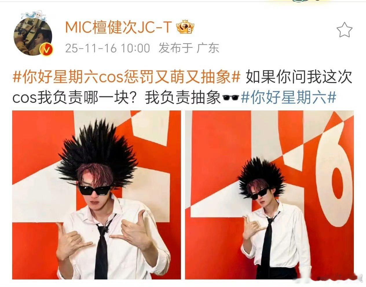 穿夸张cos服做惩罚动作,檀健次手脚不协调的样子超憨,瞪圆眼睛的呆萌神态,抽象又