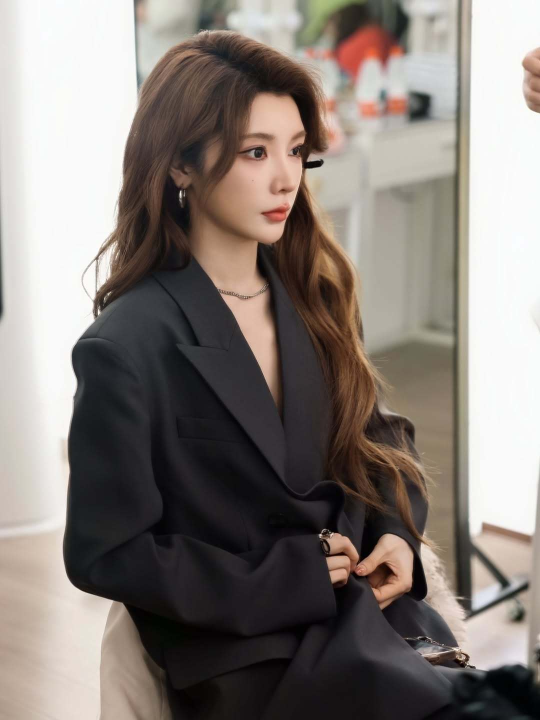 刘亦菲这条裤子挺养生,毕竟降温了肚脐眼必须护住啊