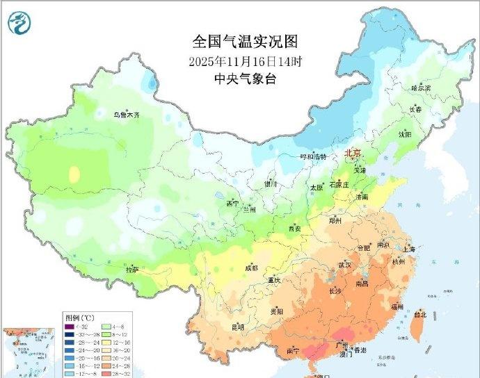 【内蒙古局地降温超16℃】内蒙古局地降温降紫了 相比昨天同时次,今天14时,华北、东北大部地区出现剧烈降温。其中,内蒙古局地降温幅度超16℃。而在寒潮还未抵达的南方大部地区,今天还在升温。明后天,寒潮将大举南下,制造大风降温天气。
