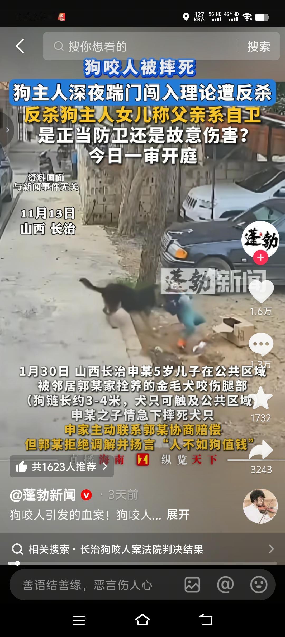 摔死狗过分吗?无需多言,直接看视频,相信你看完视频,一定会觉得不仅不过分,而且相当泄恨,等于是见义勇为、为民除害。 申某五岁的儿子在外面公共区域正玩耍,突然一只狗窜过来叼住他的胳膊就撕咬,幸好申某及时赶到,否则后果不堪设想。 狗拴在外面,而且是条咬人的狗,而且狗链子有三四米长,试问,杀死这样的狗还需要理由吗?