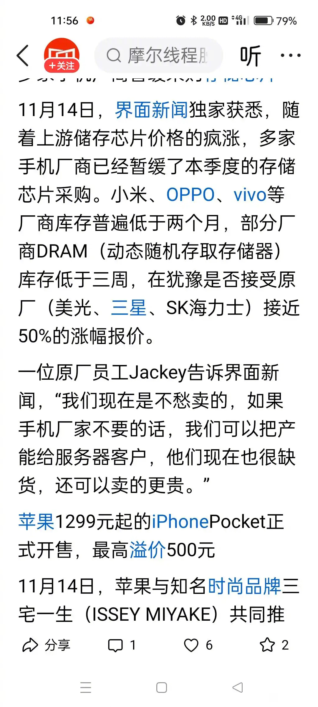 储存芯片涨价50%,看来明年手机要大幅涨价了