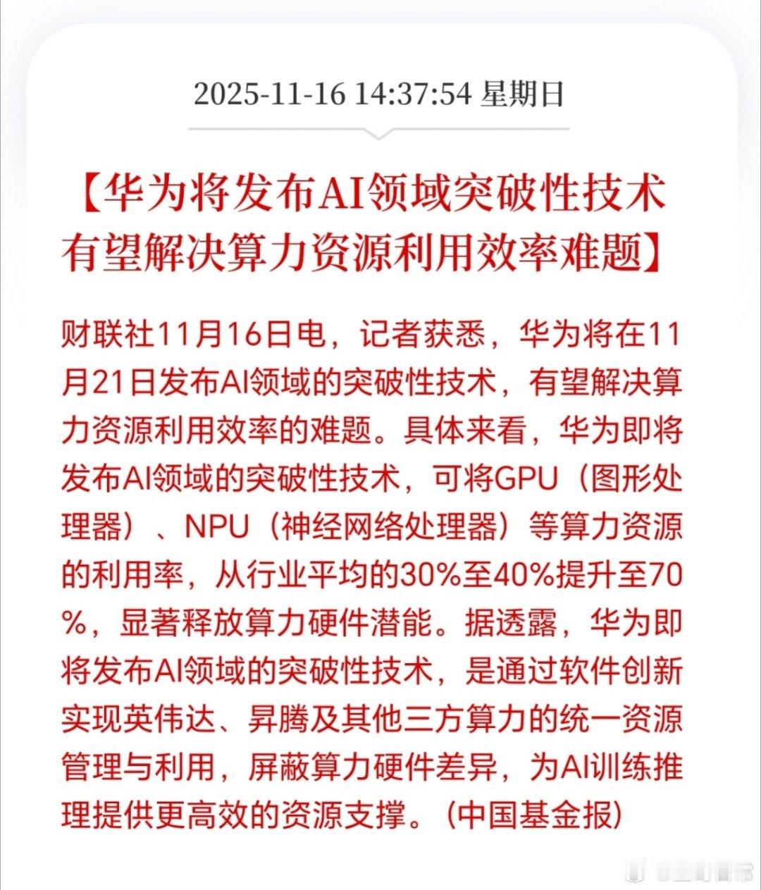 华为AI突破性技术来了。AI没有泡沫,只有优胜劣汰。